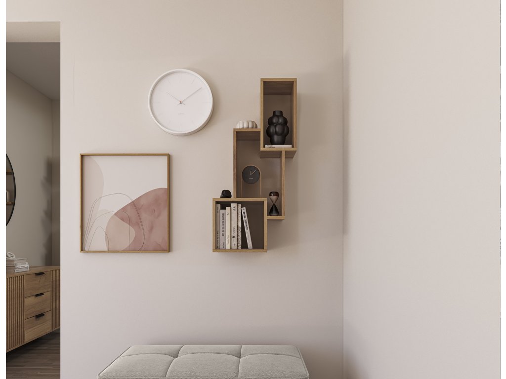 Nástěnná police ALITTY je nejen stylová, ale i funkční. Skládá se ze tří menších polic různých velikostí. Každá police má jinou velikost, což umožňuje poutavé uspořádání předmětů a vytvoření zajímavé vizuální expozice na stěně. Díky svému modernímu designu a univerzálním rozměrům se police ALITTY hodí do různých stylů interiérů.