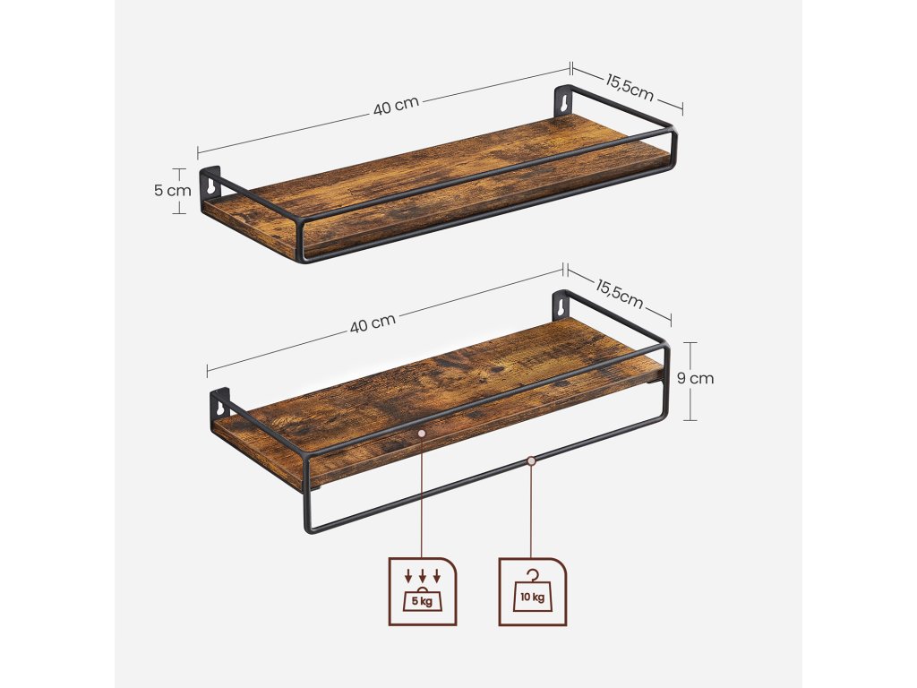 Police jsou vyrobeny z vysoce kvalitní dřevotřísky a každá unese až 5 kg, pevná ocelová tyč až 10 kg. Ano, unesou vaše věci s lehkostí!