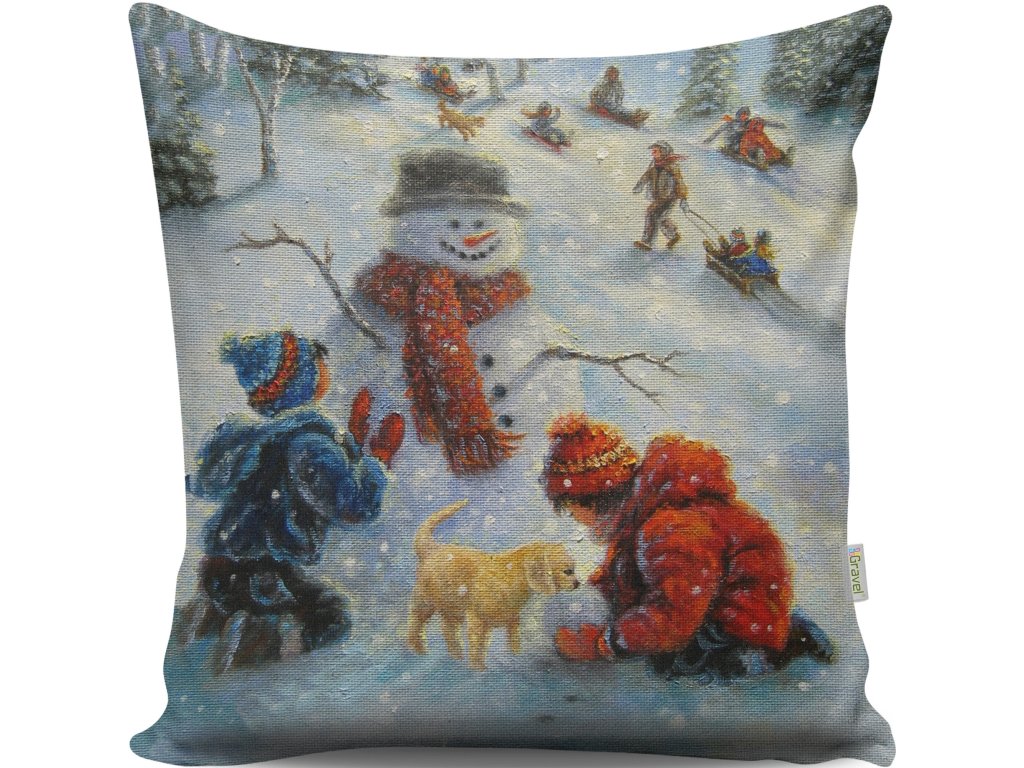 Dekorativní polštářek s motivem SNĚHULÁK.