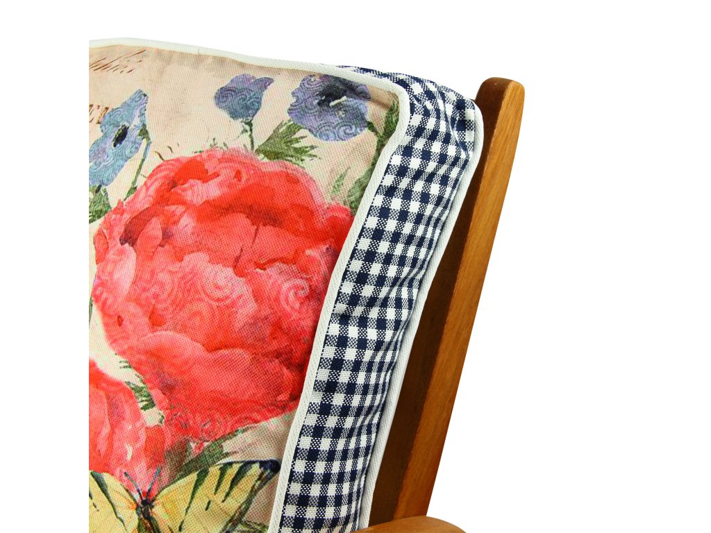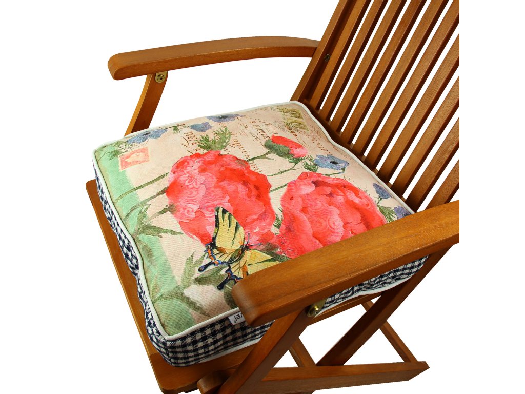 Polštář čtvercového tvaru s motivem vlčího máku, který lze využít i jako podsedák nebo na opěrečnou část židle.