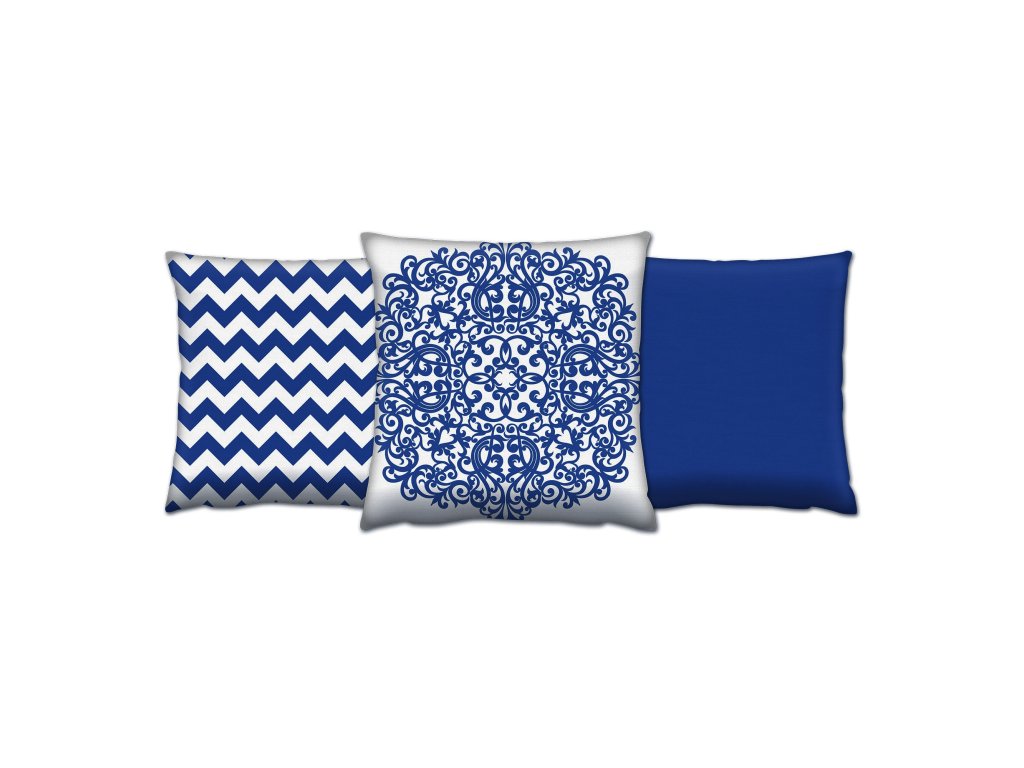 Sada dekoračních polštářků MOTIVY MODRÁ 43 cm bavlna/polyester