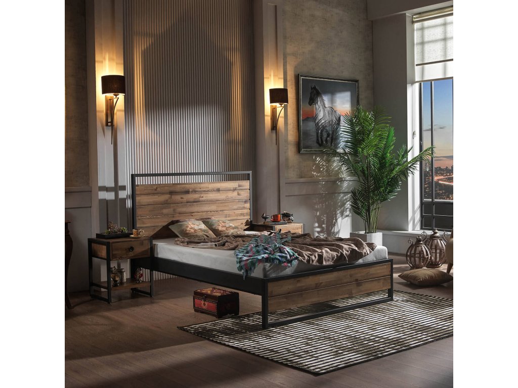 Přijměte industriální trend s naší manželskou postelí. Její minimalistický design a čisté linie vyzařují pocit modernosti, zatímco kovový rám jí dodává nádech syrového, industriálního kouzla. Tento postelový rošt v sobě bez námahy spojuje styl a funkčnost, takže se stane dokonalým středobodem vaší ložnice.
