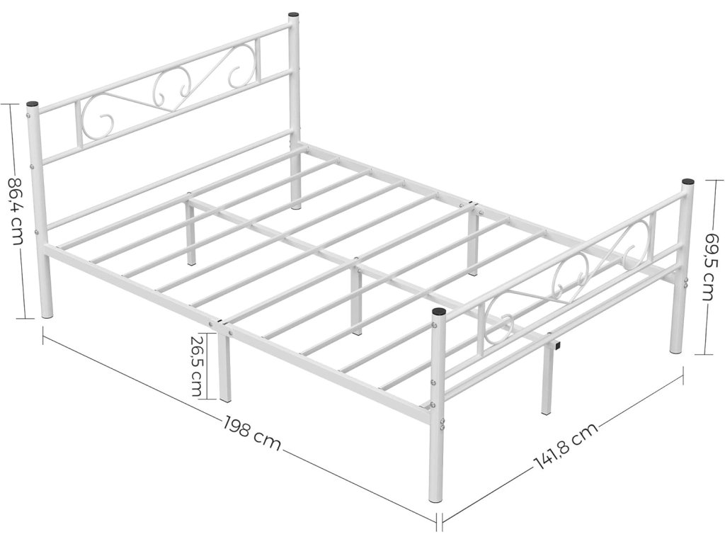 Vysoce kvalitní nosníky a 9 odolných kovových nohou s kovovými spojkami ve tvaru U dodávají tomuto rámu postele vysokou stabilitu a nosnost 250 kg - žádné kývání, žádný nepříjemný hluk.