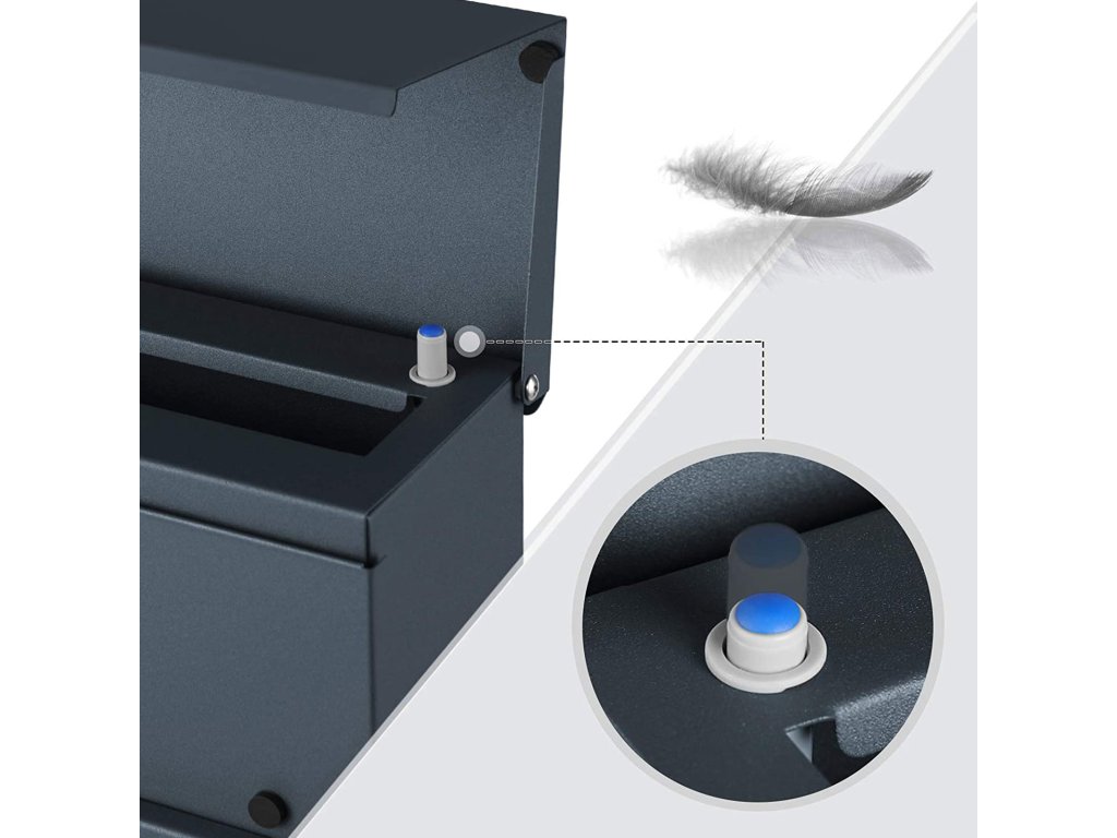 Přestože je tato poštovní schránka zvenku pevná, zůstává velmi měkká: speciální mechanismus umožňuje jemné, pomalé a tiché zavírání víka, takže průchod pošťáka už nikoho neruší.