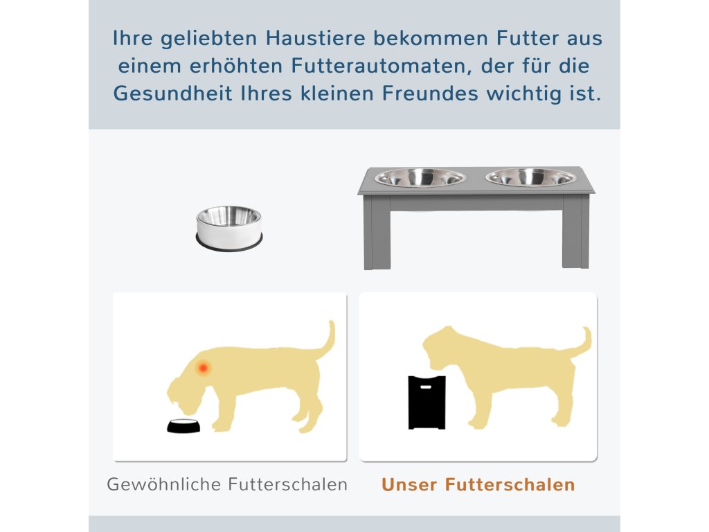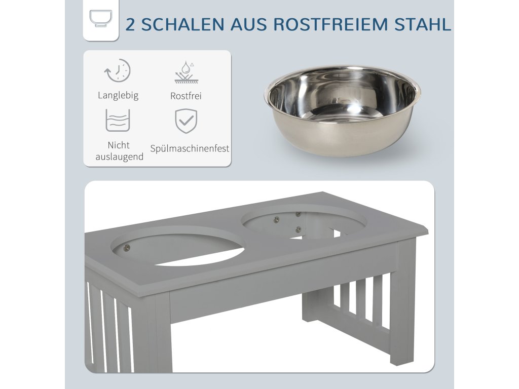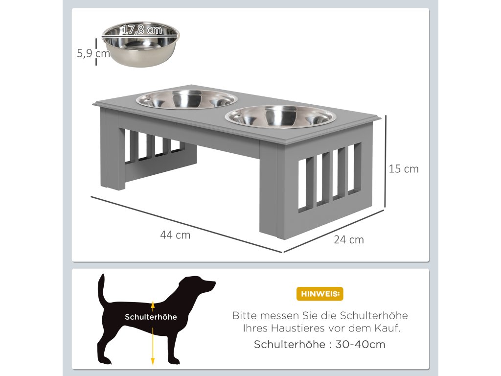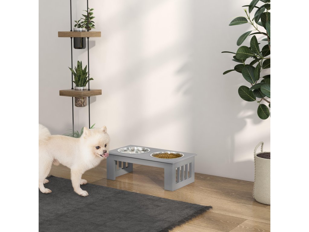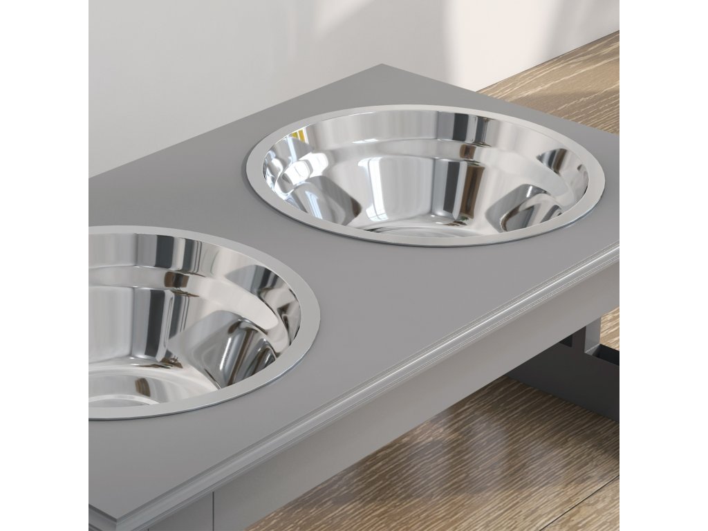 Stolek pro psy se 2 miskami 0,9 l 44 x 15 x 24 cm šedá
