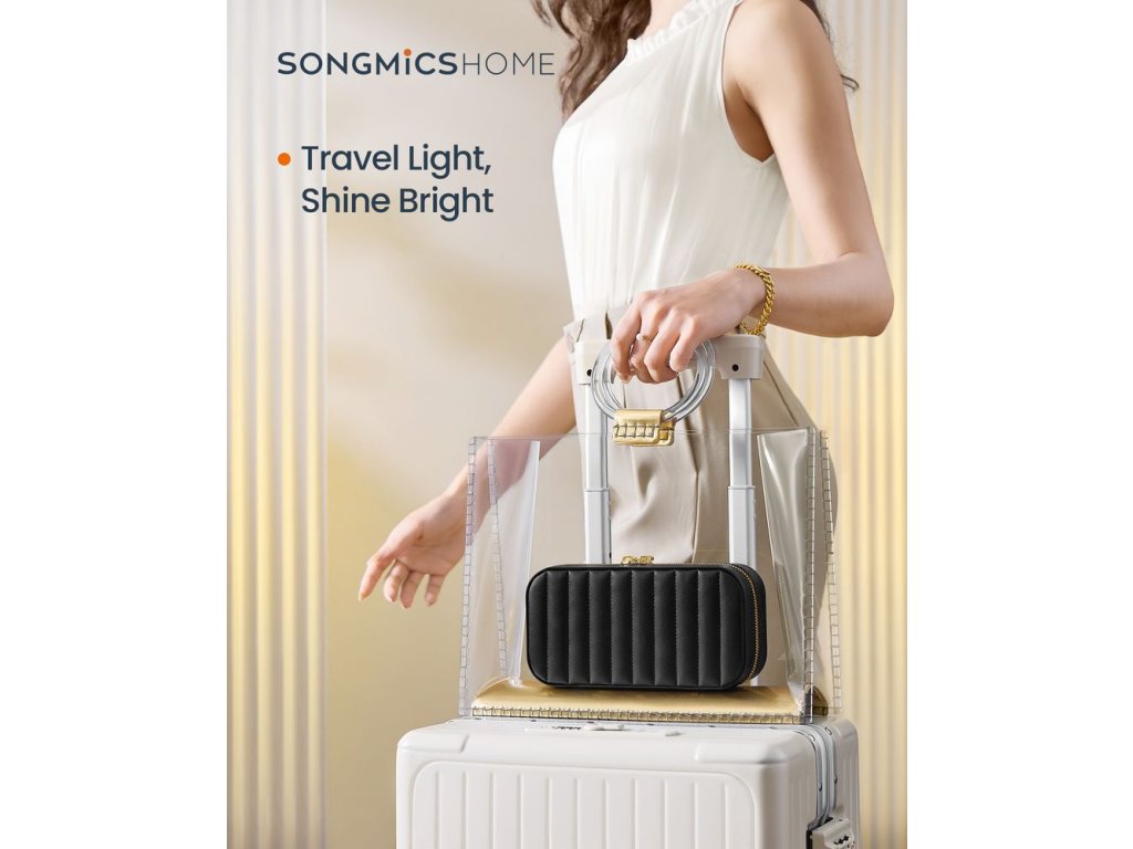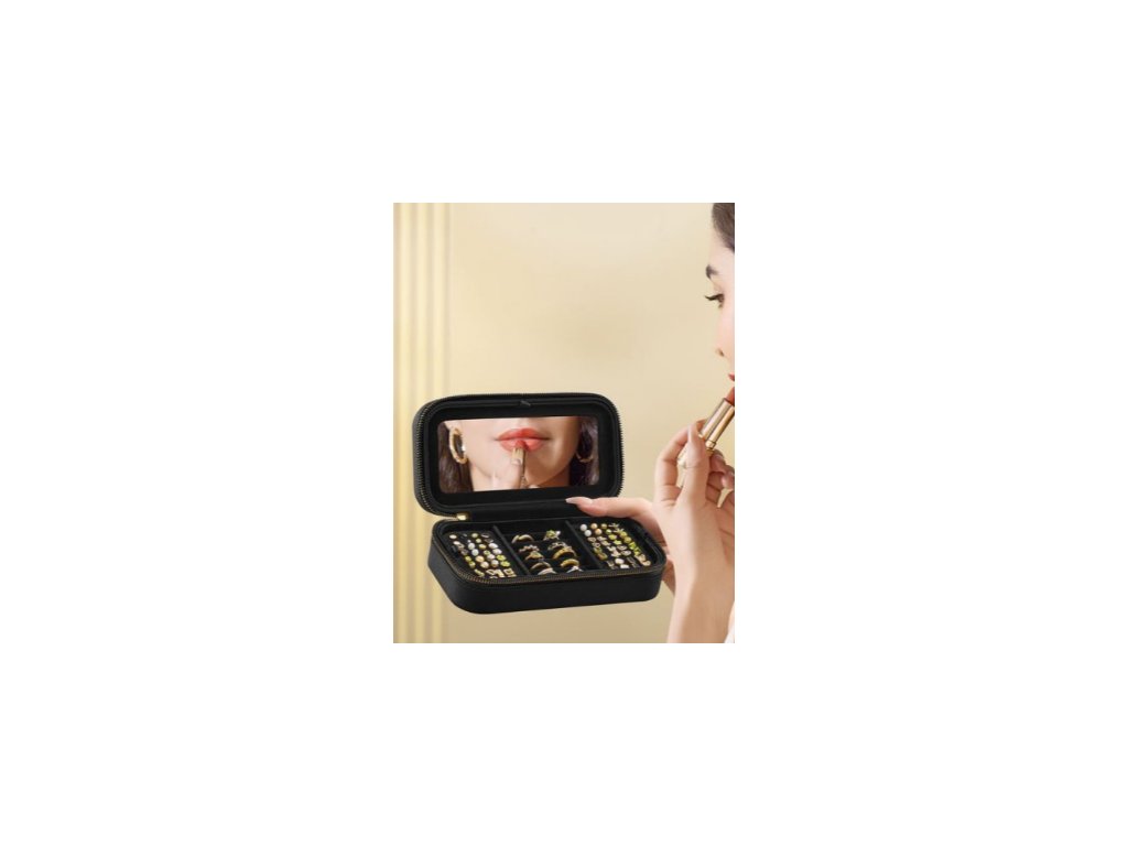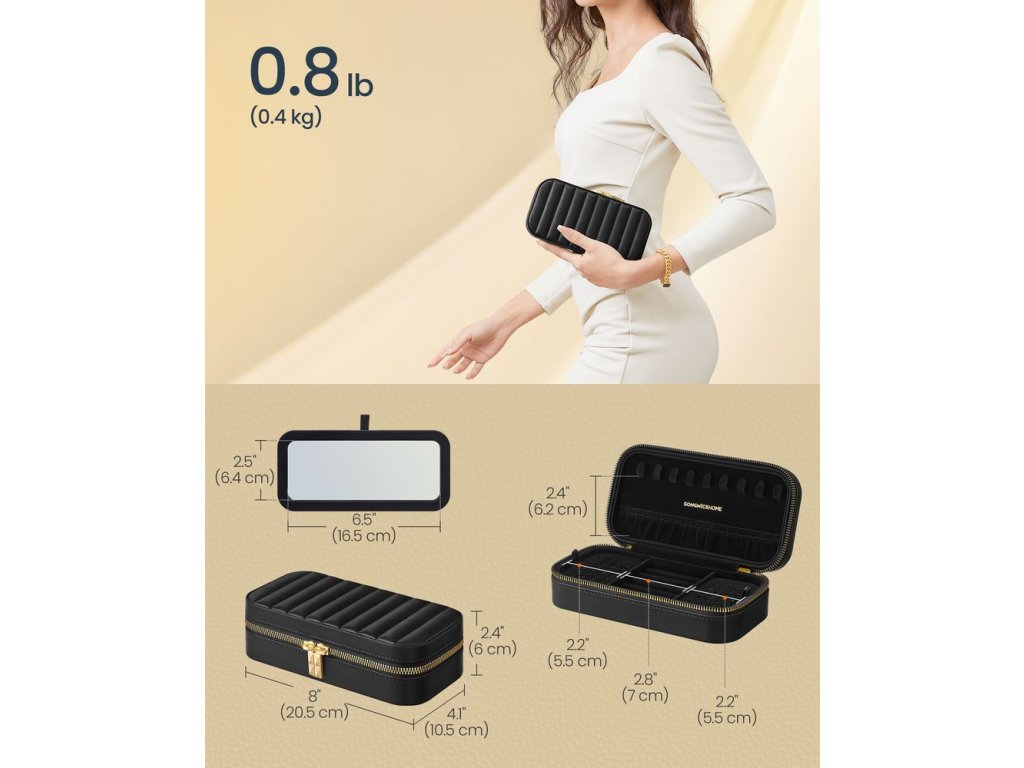 S touto malou šperkovnicí o elegantních rozměrech 10,5 x 20,5 x 6 cm si můžete svůj styl vzít na cesty - je ideální do každé tašky nebo zavazadla. Součástí je praktické zrcátko pro úpravu make-upu a hladké zipy pro snadný přístup.