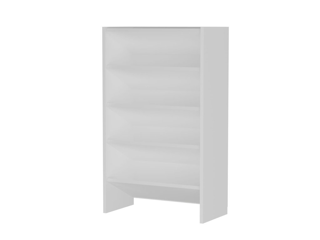 Bílý botník NIL je vyrobený z pěti naklopených regálů, jenž nabízejí úložný prostor pro Vaši obuv.