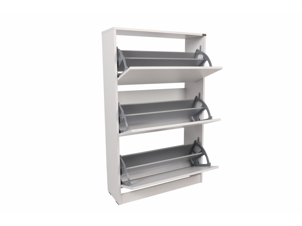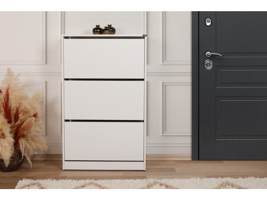 Praktický botník v bílé barvě se třemi výklopnými zásuvkami na oblíbenou obuv.