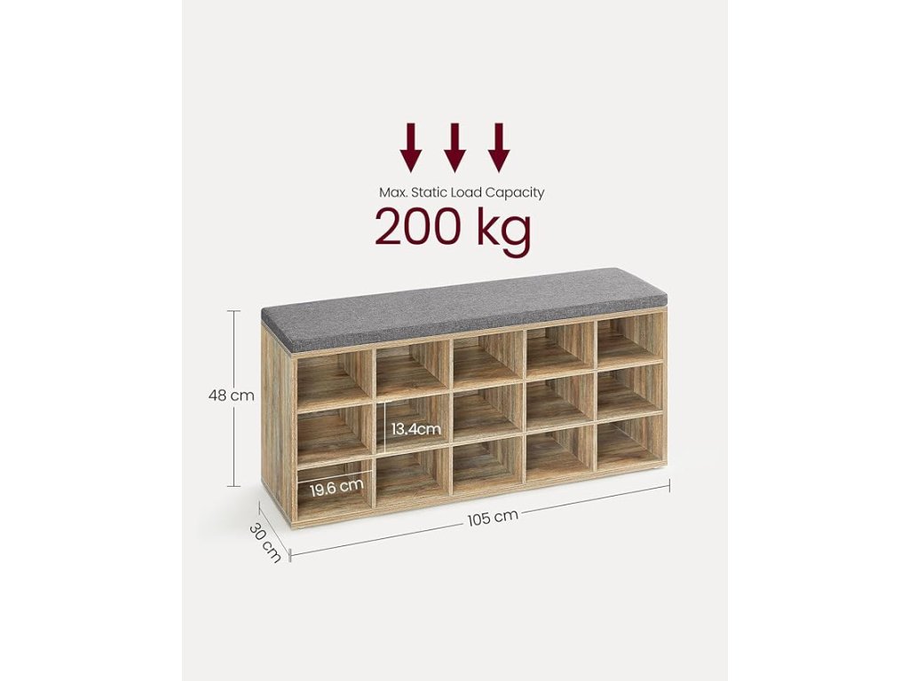 Botník s lavicí 15 přihrádek 105 x 48 x 30 cm dub šedá