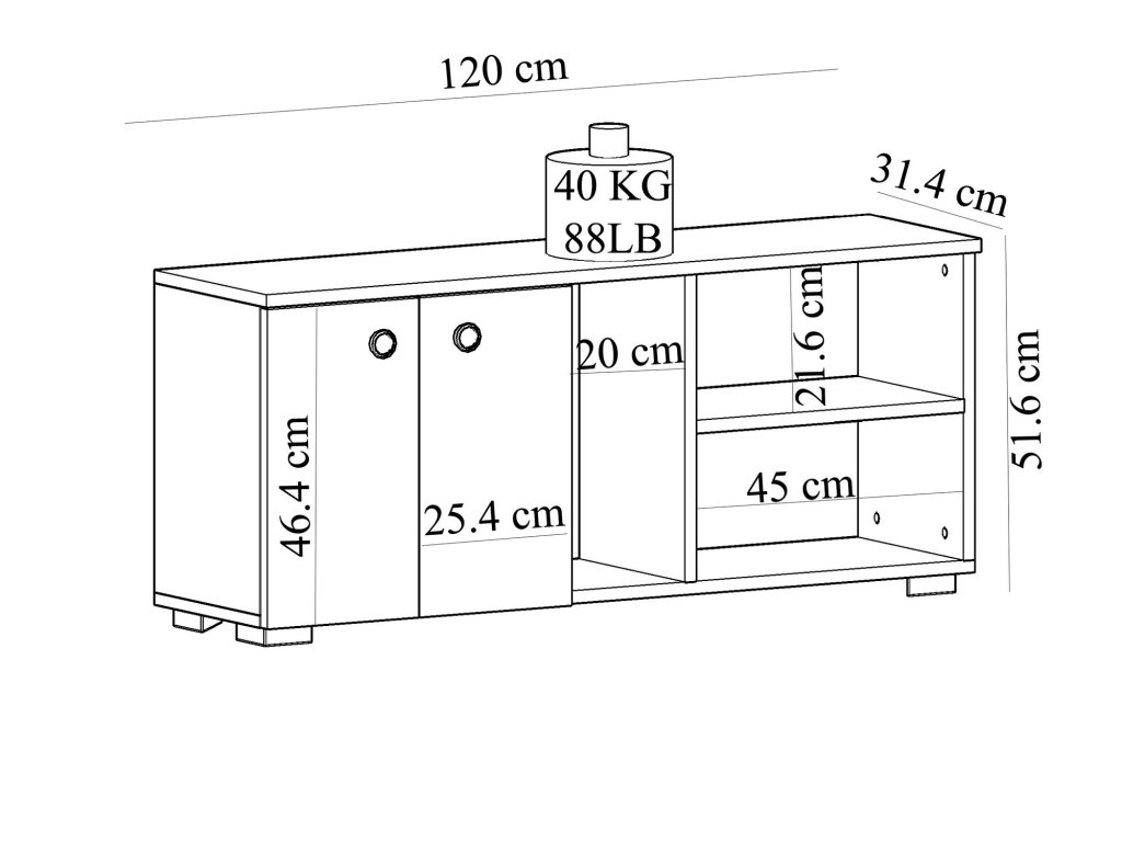 Rozměry: Šířka: 120 cm Hloubka: 31,4 cm Výška: 51,6 cm