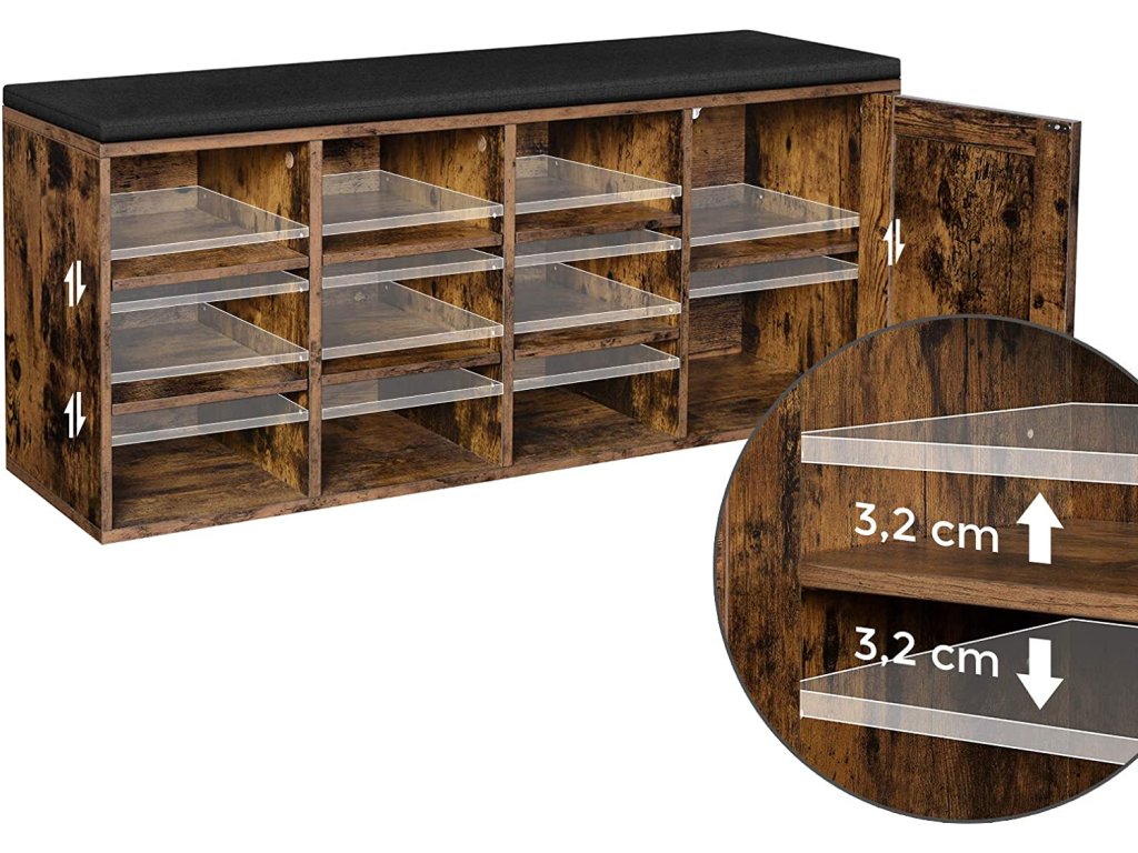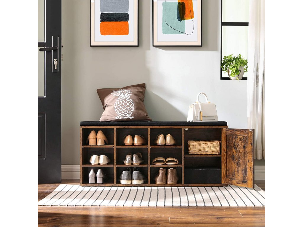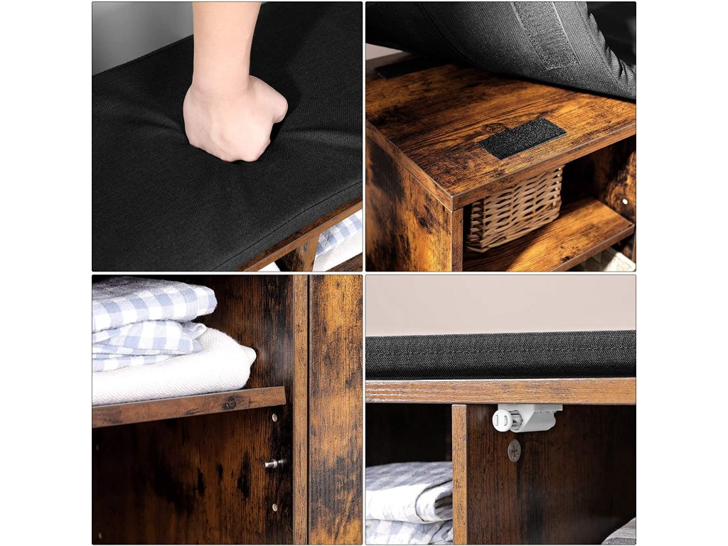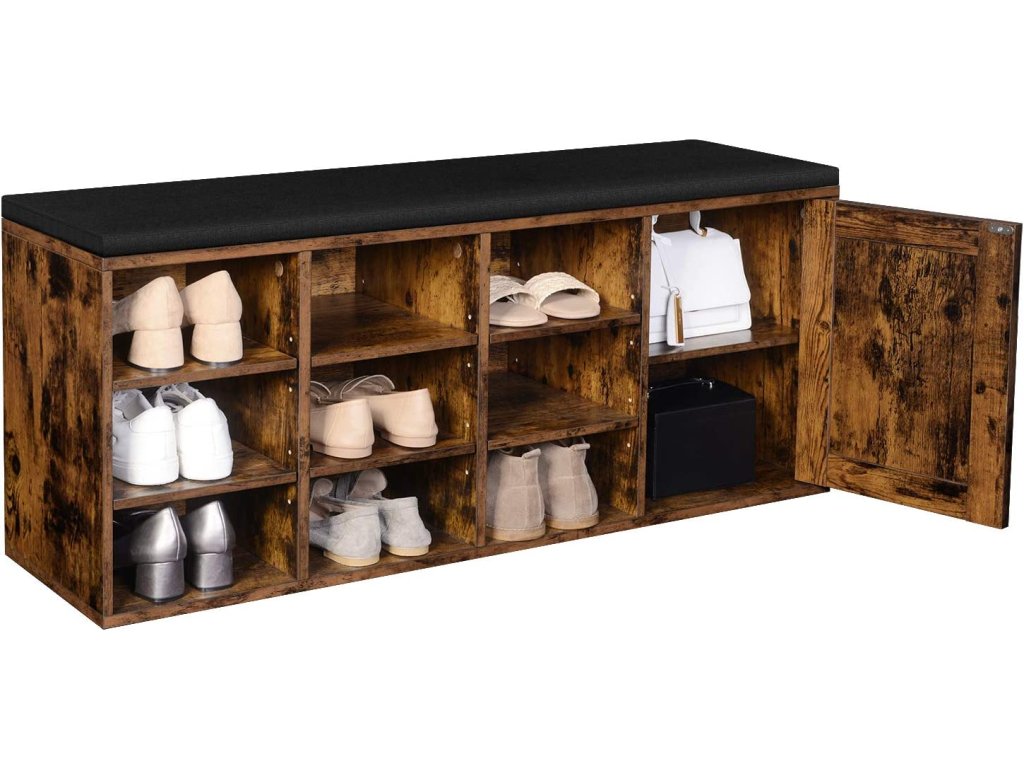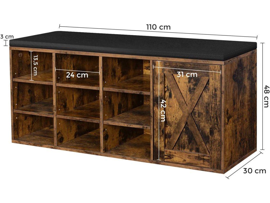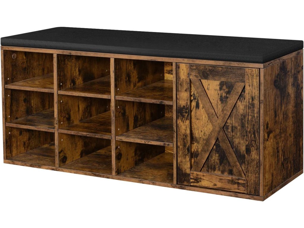 Botník se sedákem 110x30x48cm rustikální černý