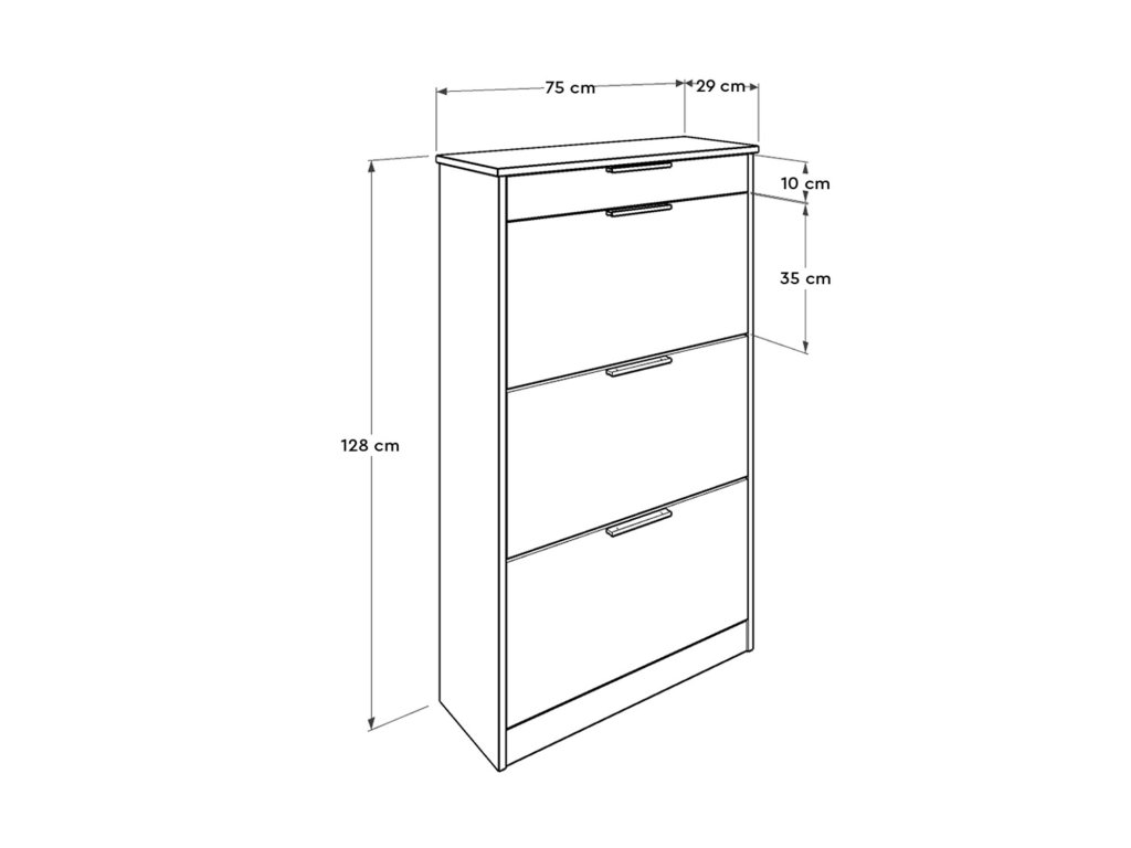 Celkové rozměry: Šířka: 75 cm Hloubka: 29 cm Výška: 128 cm