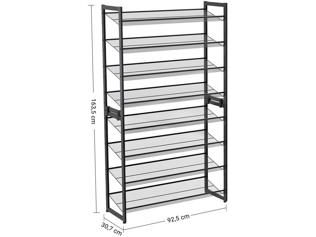 Variabilní kovový botník s osmi policemi postavíte do výšky nebo do šířky, záleží jen na vás.