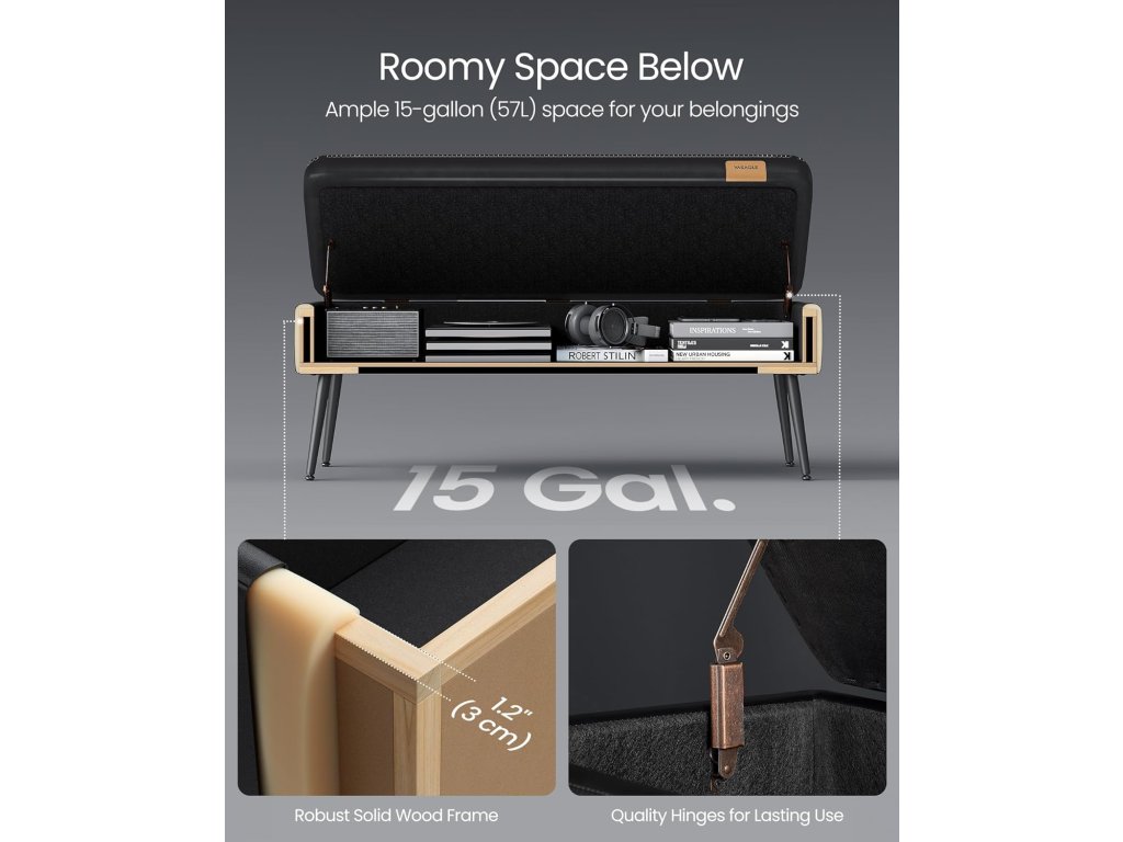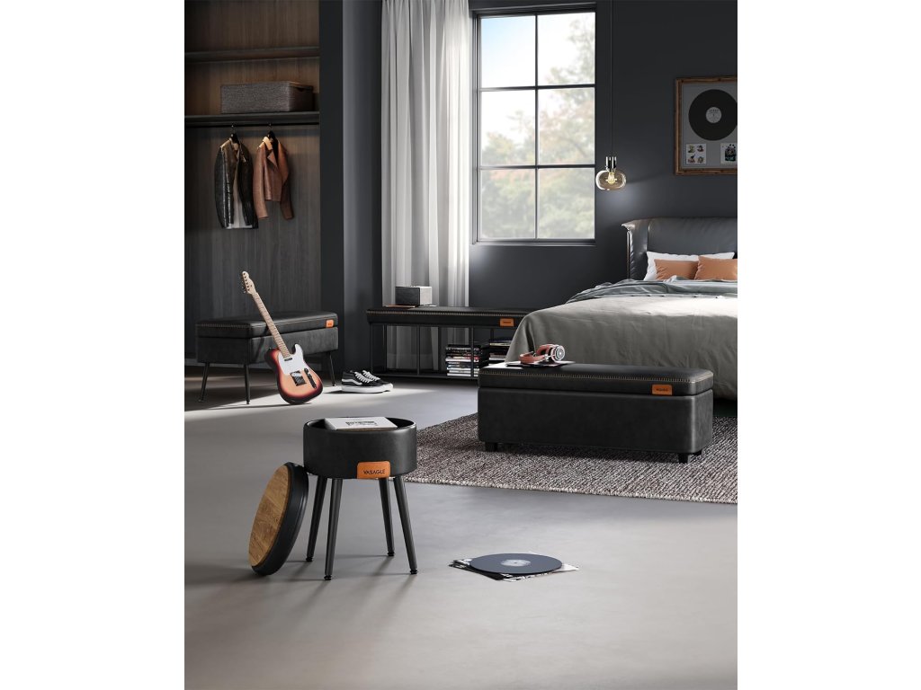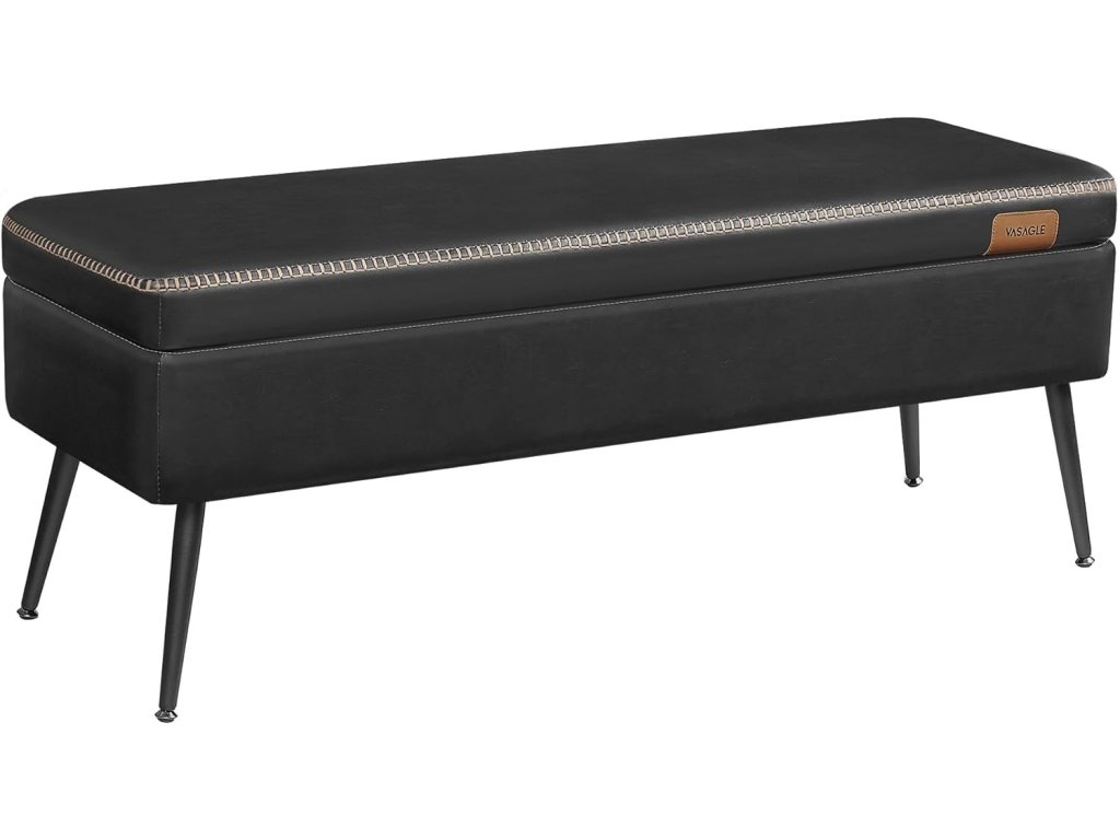 Černý, polstrovaný otoman VASAGLE EKHO s úložným prostorem.