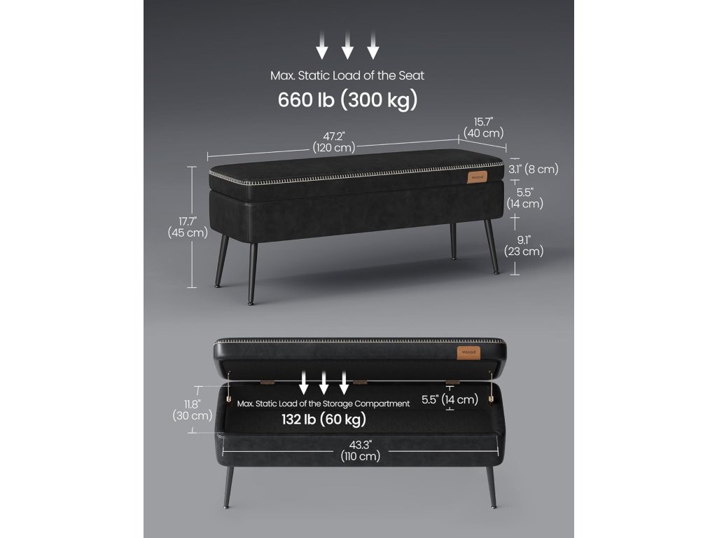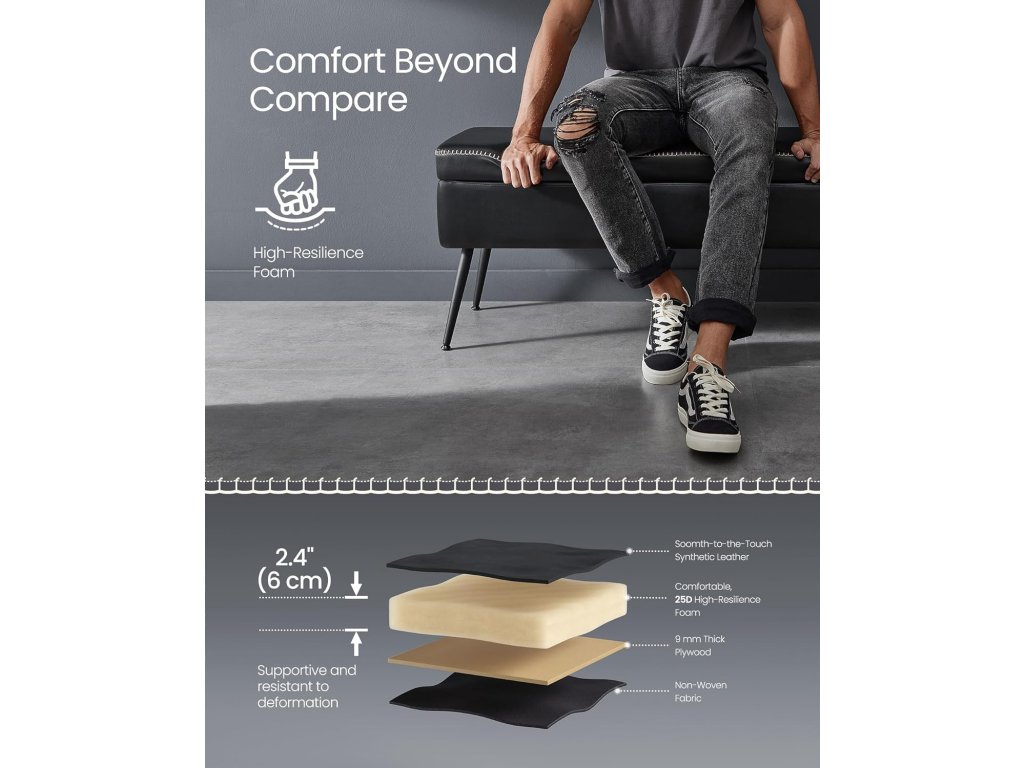 Přejeďte rukou po hladkém potahu, který se snadno čistí, a poté se ponořte do 6 cm silné podpůrné 25D vysoce odolné pěny, která je odolná vůči deformaci. Tato lavice s úložným prostorem poskytuje pohodlné sezení, a přitom je nenáročná na údržbu.