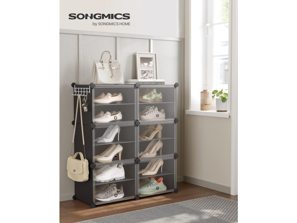 Plastový organizér na boty, do kterého se vejde až 24 párů bot, lze použít také k uložení tašek a oblečení. Díky bočním háčkům, které šetří místo, je to pohodlný způsob, jak zavěsit klobouky nebo psí vodítka.
