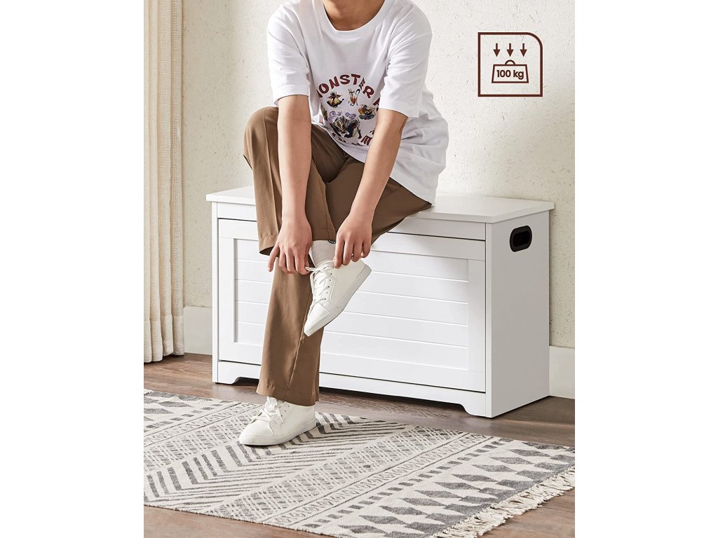 Uzavíratelný botník je současně velice šikovnou lavicí, kterou ocení převážně ti, kdo si rádi posedí při obouvání nebo zouvání bot.