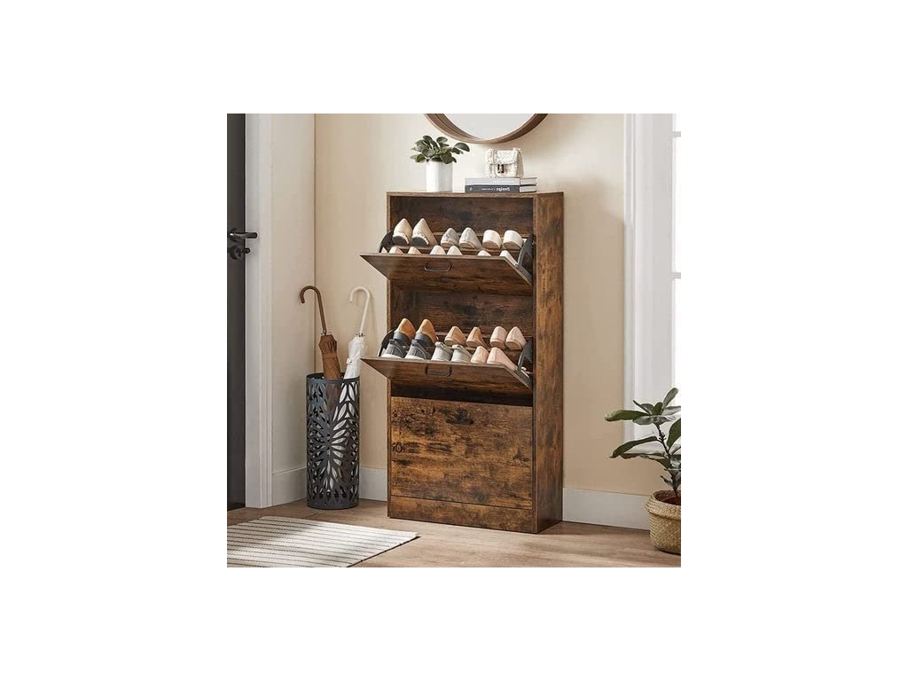 Hnědý třípatrový botník nabízí uzavřený úložný prostor pro Vaši obuv.