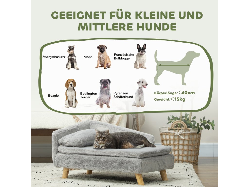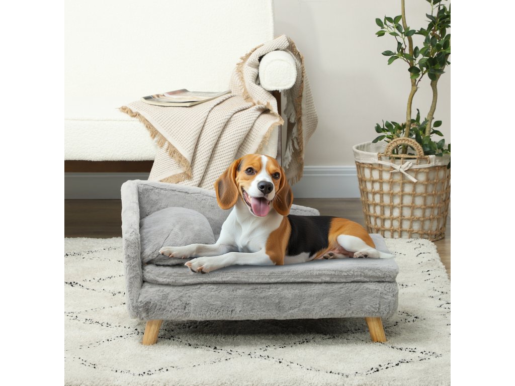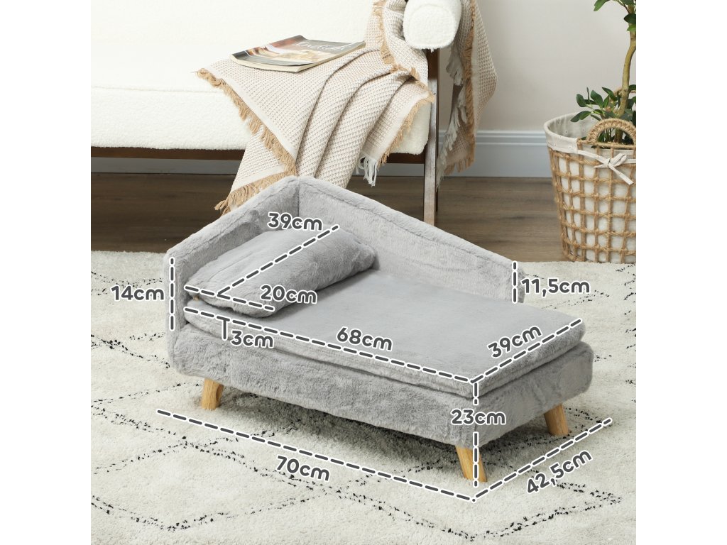 Pohovka obdélníková s dřevěnými nožkami pro malé psy a kočky 47 x 20 x 40 cm šedá