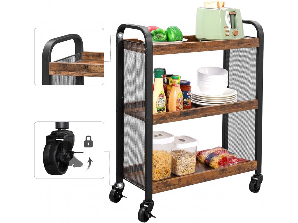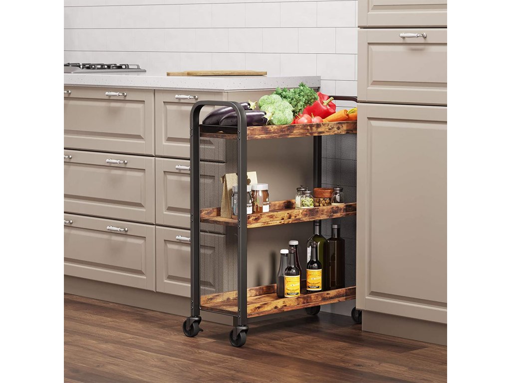Tento kompaktní kuchyňský vozík šetřící místo se 3 užitečnými policemi vám pomůže pracovat efektivně, aniž by zabíral celou kuchyň