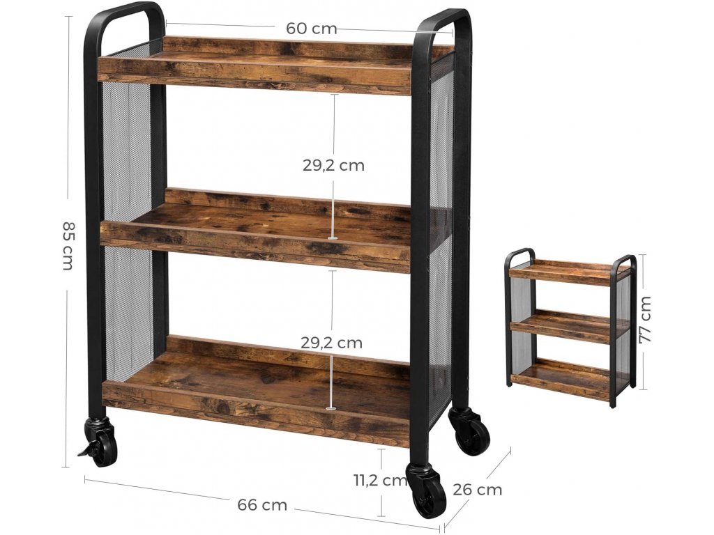 Pojízdný regál industriální 66x26 cm