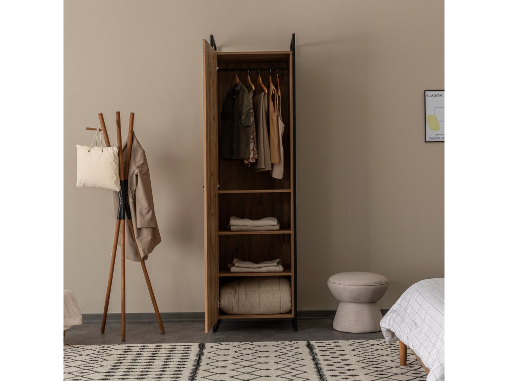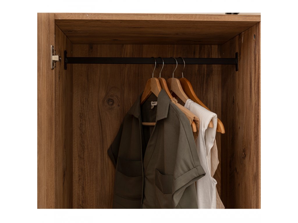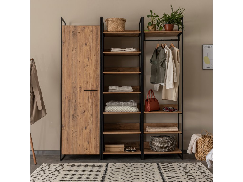 Díky modernímu a neotřelému průmyslovému pojetí tyto šatní skříně okamžitě pozvednou estetiku vašeho pokoje. Kombinace elegantních linií a barvy borovice atlantské vytváří moderní a elegantní atmosféru.