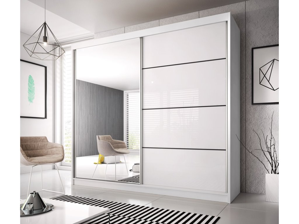 Moderní šatní skříň s posuvnými dveřmi a s možností výběru barvy korpusu a šířky skříně