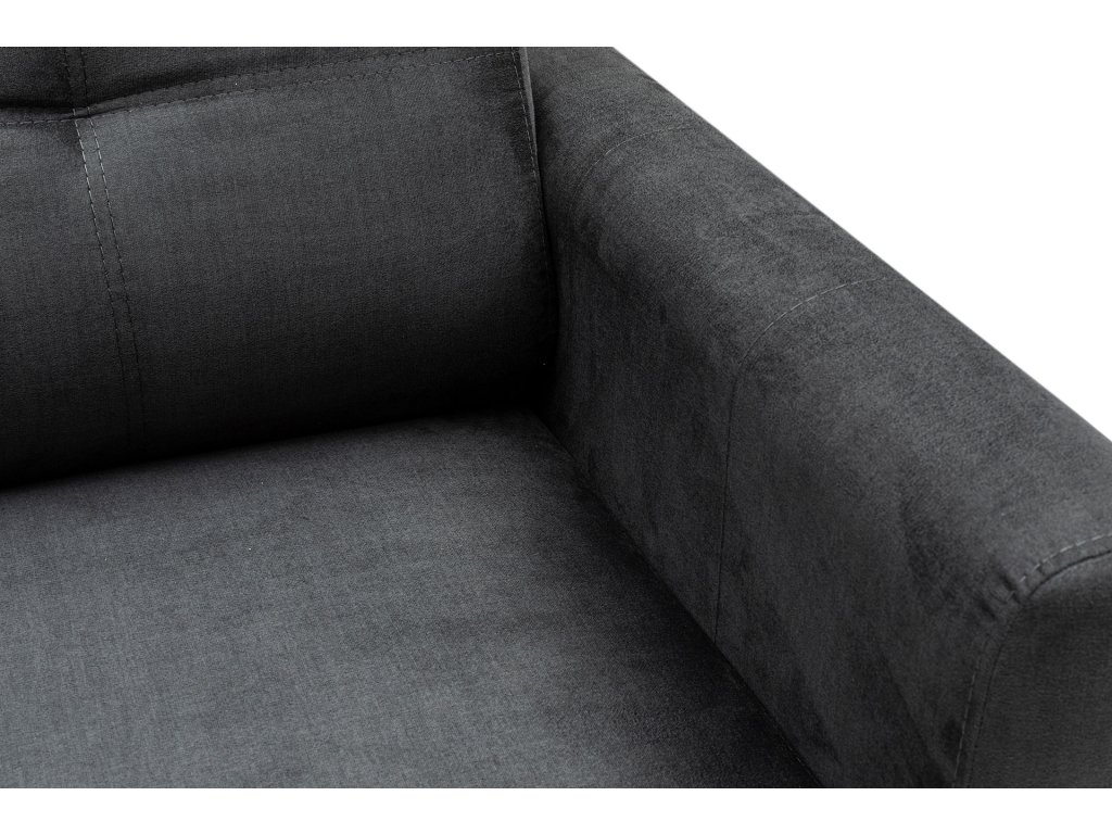 Rám: BUK / MDF desky, Pěna na sezení: 28 DNS měkká šedá pěna / 24 DNS peří i pružina uprostřed a pro záda: 8 DNS měkká šedá pěna s 24 DNS Peří, Pohyblivá zádová opěrka, Nastavitelný mechanismus područek, Pevný zádový i sedací polštář, Látka: 100% POLYESTER antracitové barvy, Matně černé kovové nohy