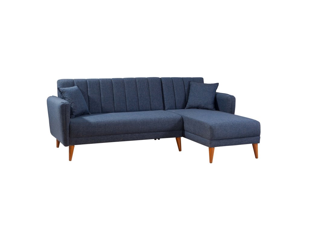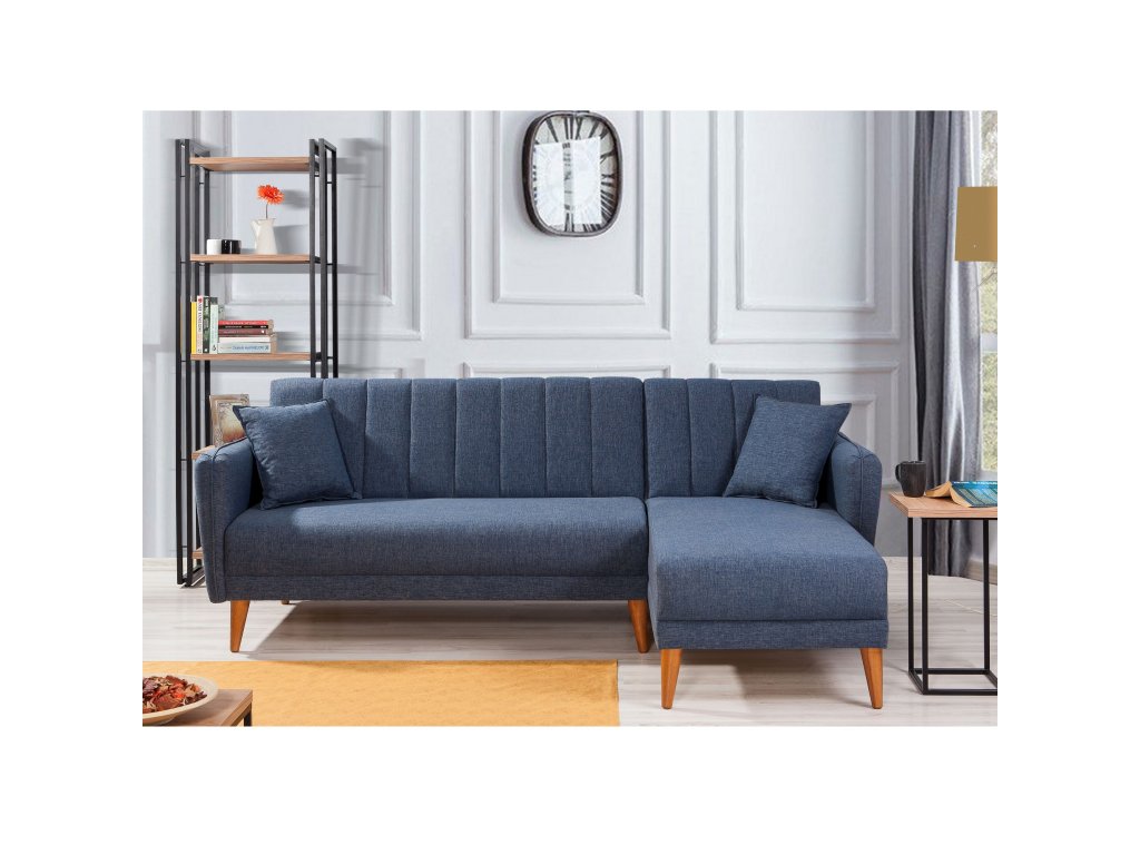 Rohová sedací souprava kterou snadno rozložíte na pohodlné lůžko v tradičním designu a modré barvě