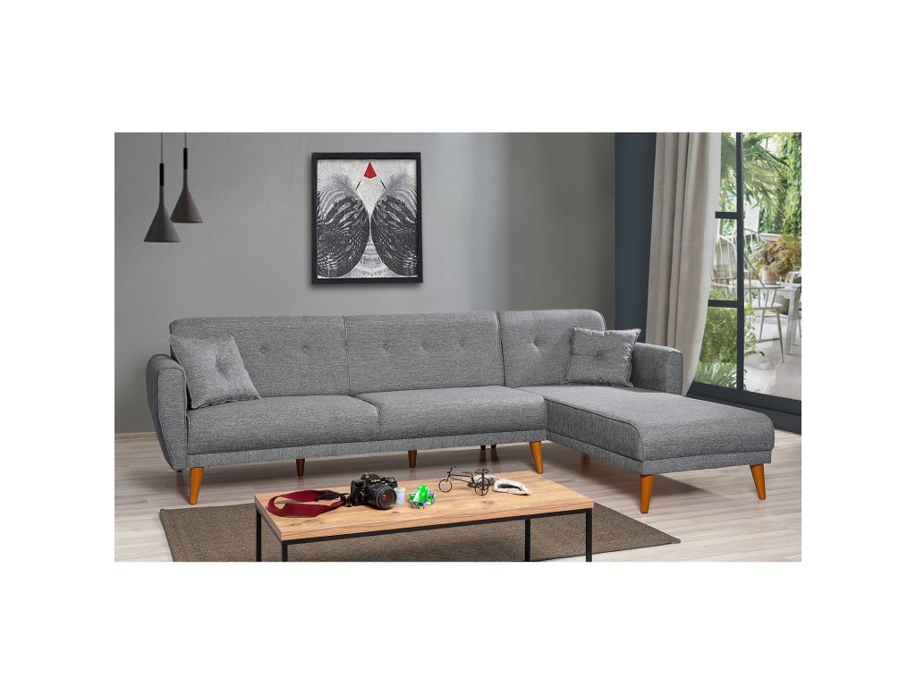 Rohová sedací souprava s rozkladem na lůžko ARIA tmavě šedá