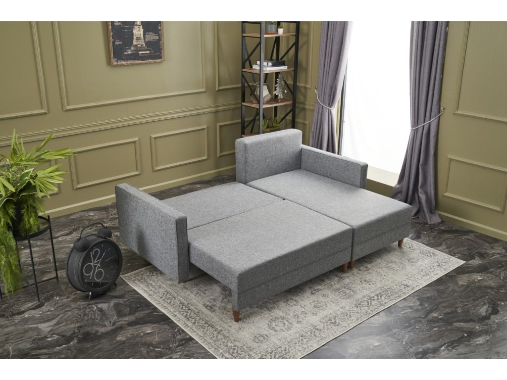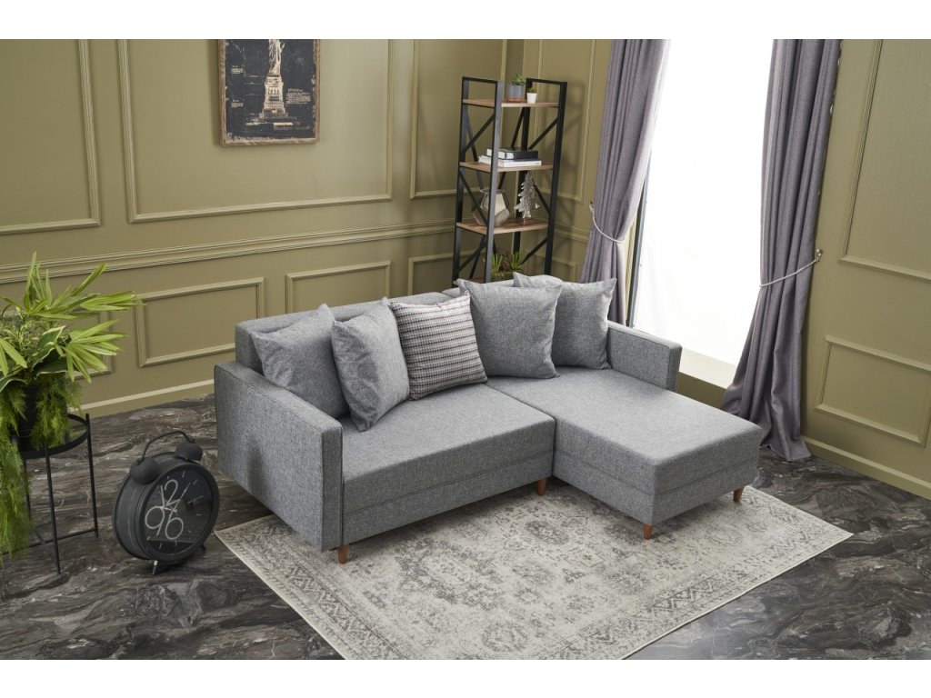 Rohová sedací souprava s rozkladem na lůžko AYDAM pravá světle šedá