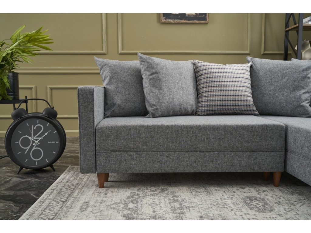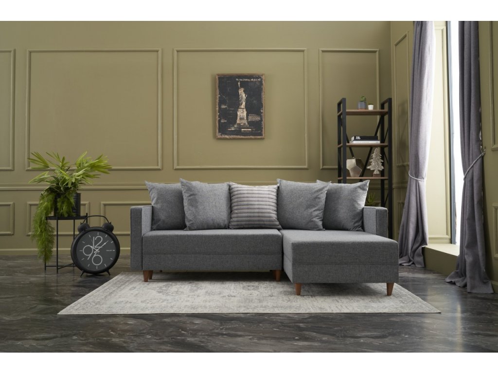 Jednoduchá rohová sedací souprava vhodná do menších obývacích pokojů kterou jednoduše proměníte v prostorné lůžko.