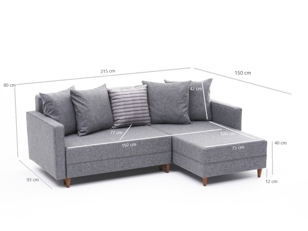 Rozměry: Šířka: 215 cm Výška: 80 cm Hloubka: 150 cm