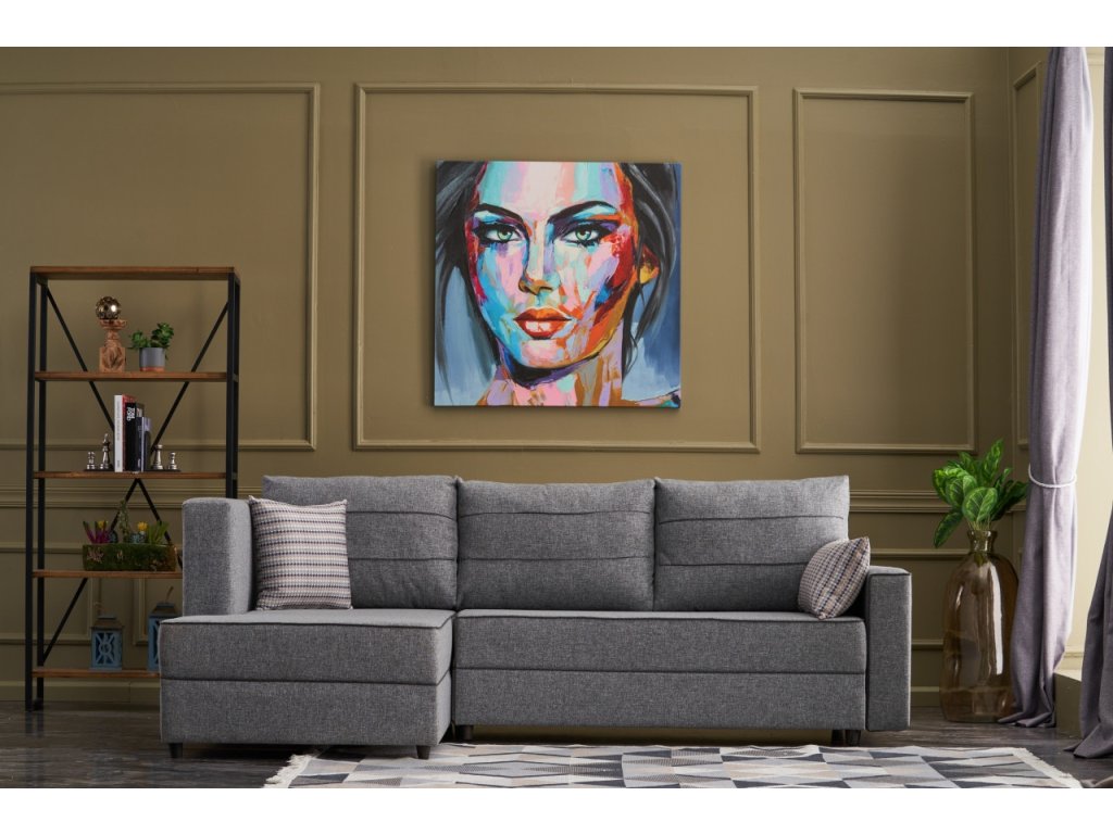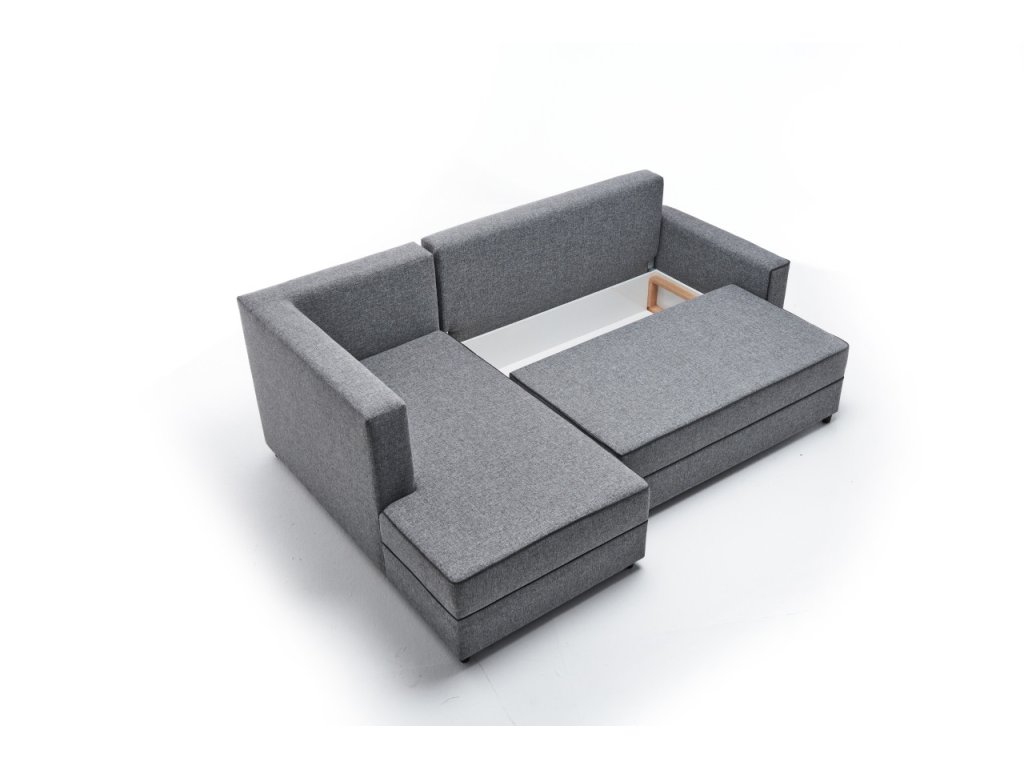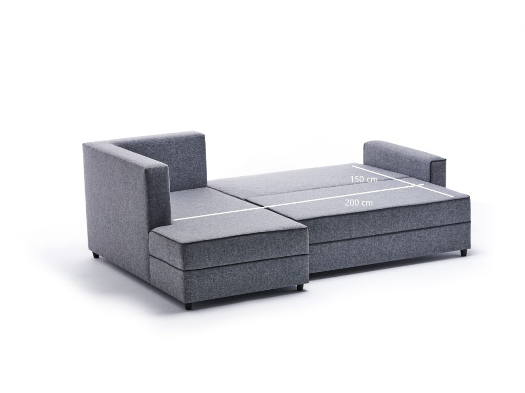 Rohová sedací souprava ECE v levém provedení s rozkladem na lůžko.