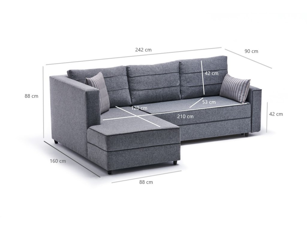 Hloubka sedu: 72 cm Výška sedu: 42 cm Délka sedu: 210 cm