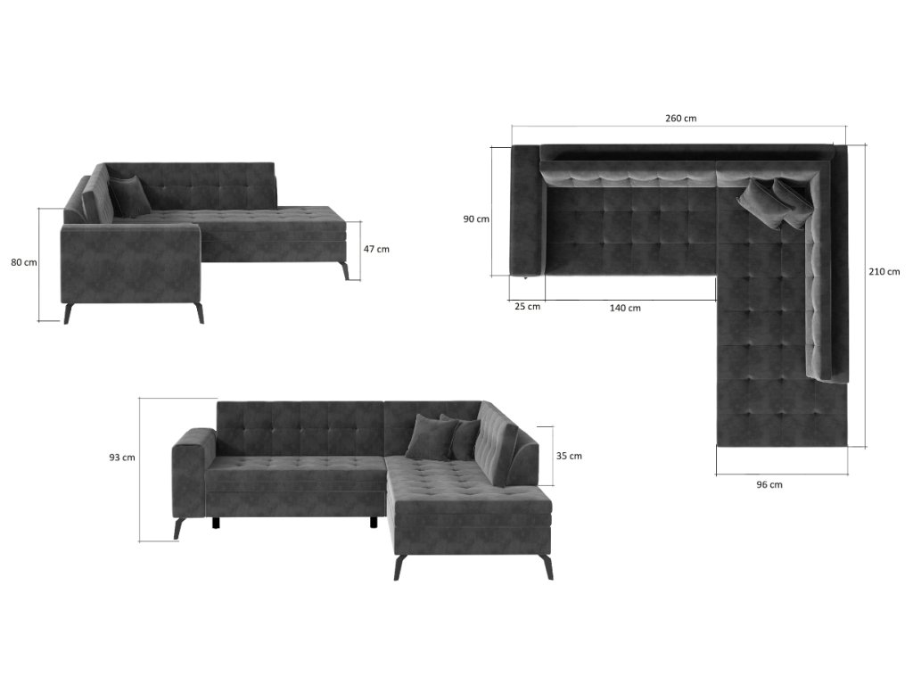 Pohovka Lanvin o rozměrech 260 x 210 x 93 cm splní očekávání i těch nejnáročnějších uživatelů. Díky svým značným rozměrům dokonale zapadne do stěn jakéhokoli interiéru mnoha stylů.