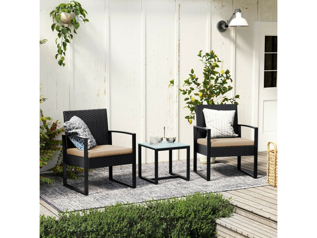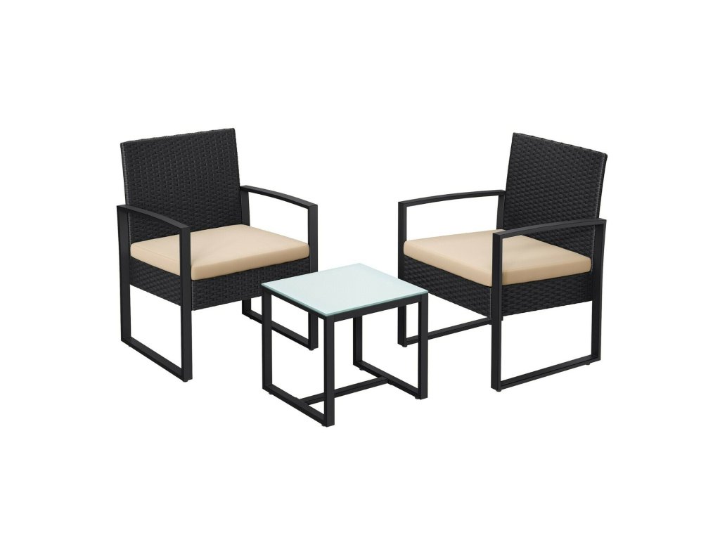 Balkónový nábytek 2+1 kov ratan černá béžová