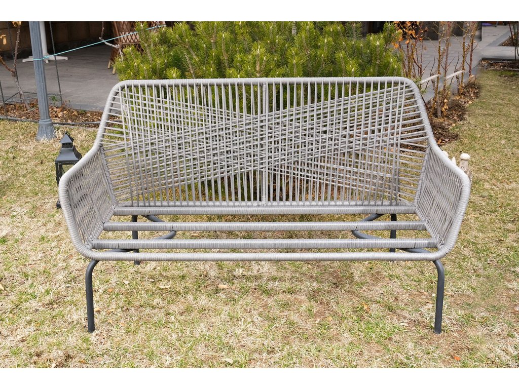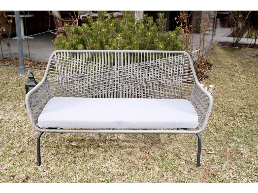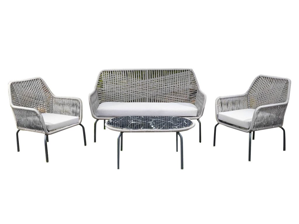 Šedá sestava zahradního nábytku BETA je složená z dvoumístné pohovky, dvou křesel a z designového konferenčního stolku.