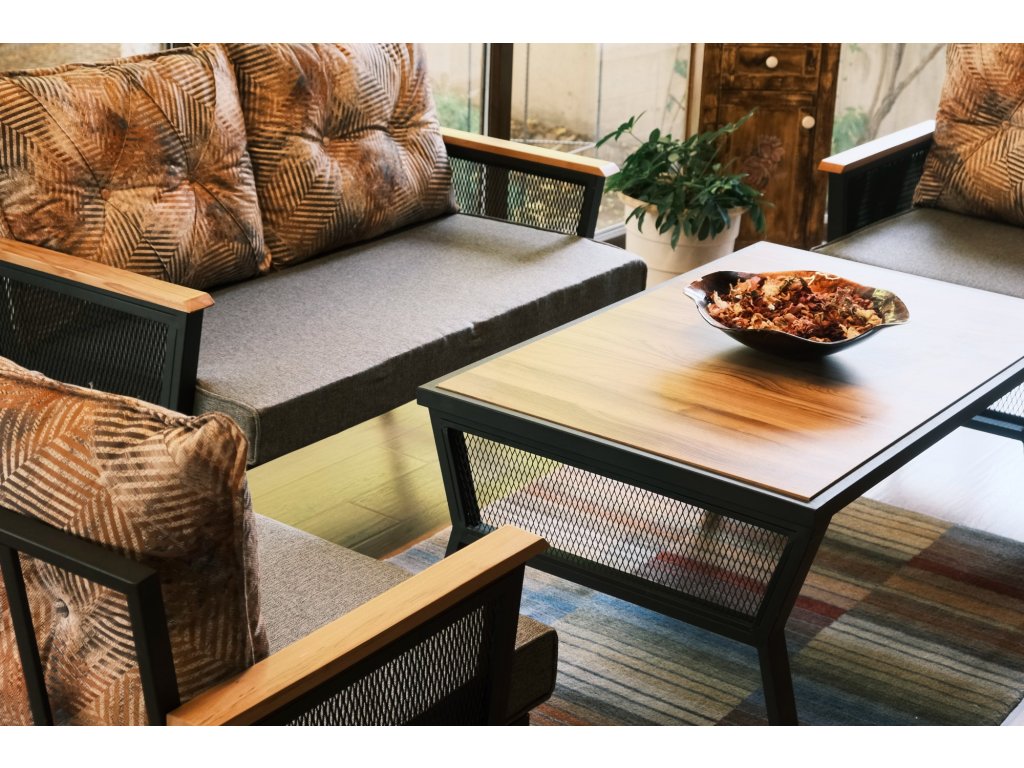 Sestava se skládá z pohovky, dvou křesel a konferenčního stolku.