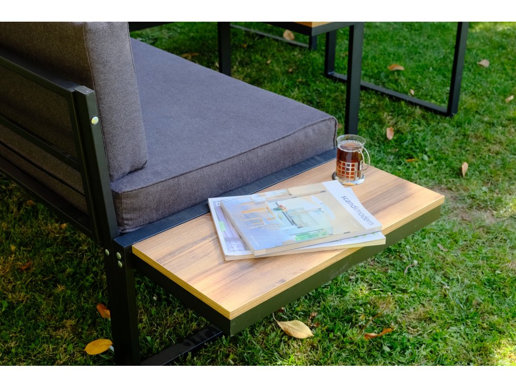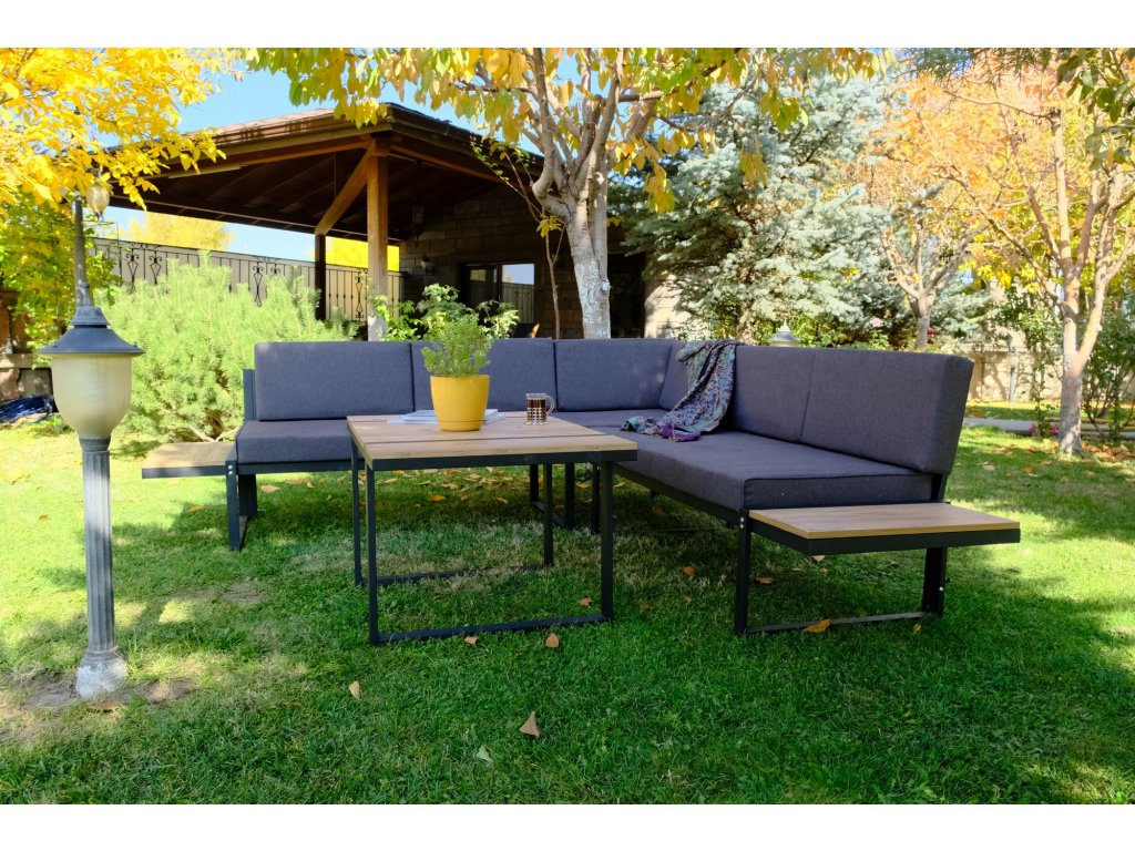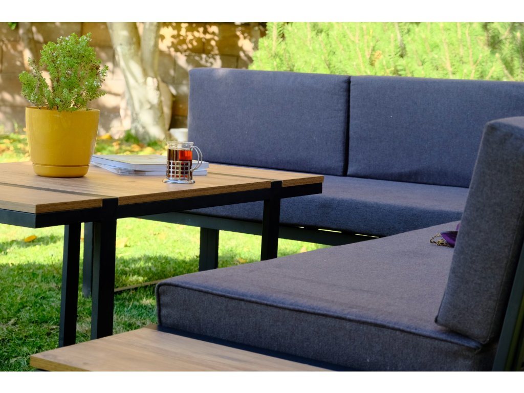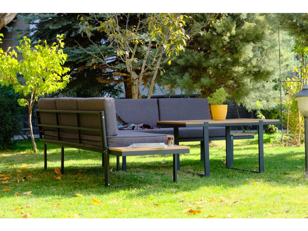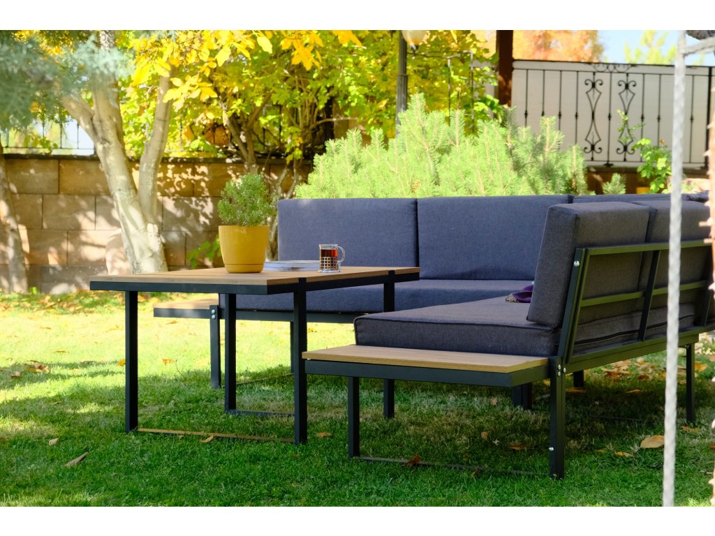 Sestava zahradního nábytku MERS CORNER černá, dřevo, šedá