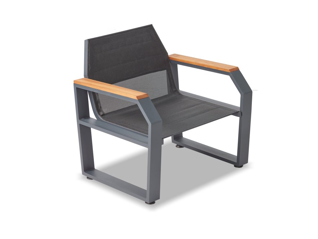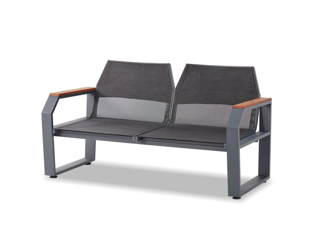 Sestava zahradního nábytku TRUVA je složená z dvoumístné pohovky, dvou křesel a konferenčního stolku v kombinaci antracitové a černé barvy.