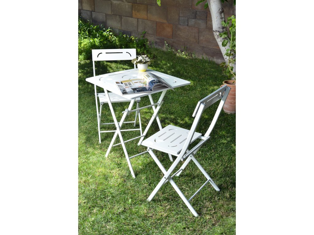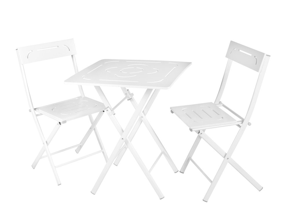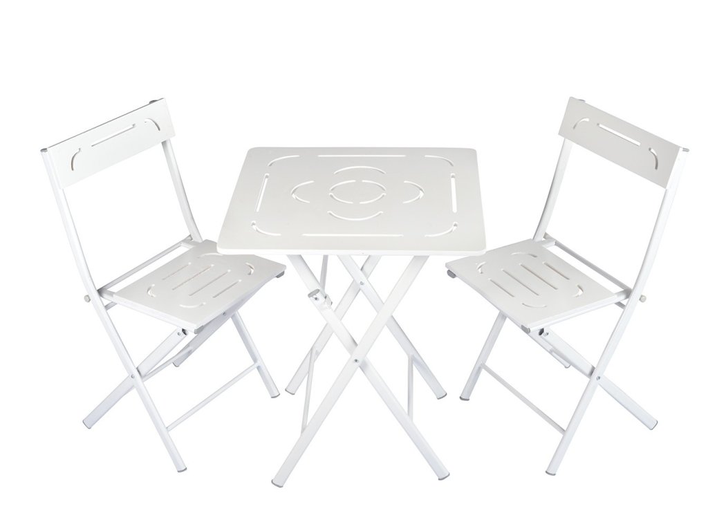 Bílý zahradní set nábytku - stolek a dvě židle z kolekce BISTRO.