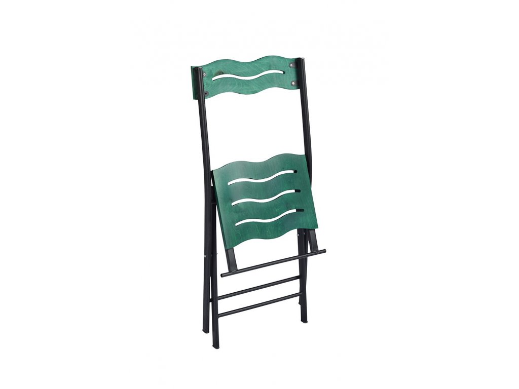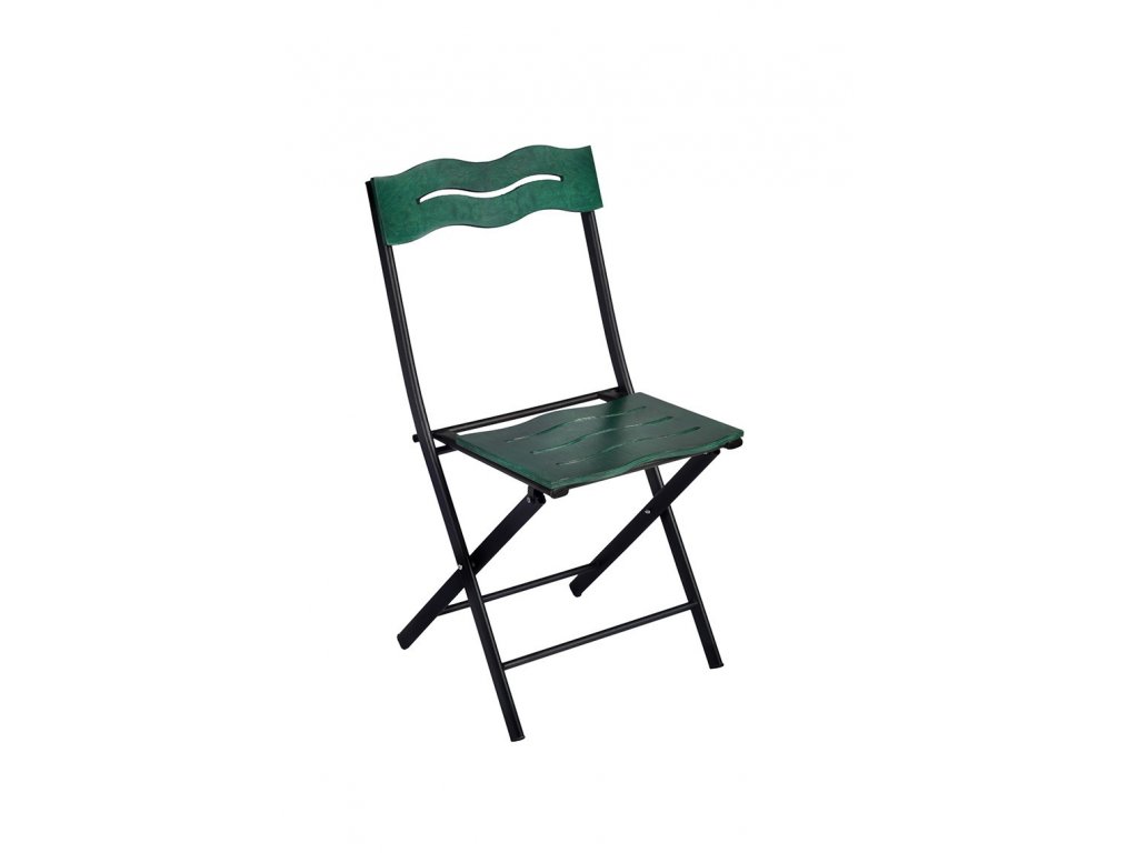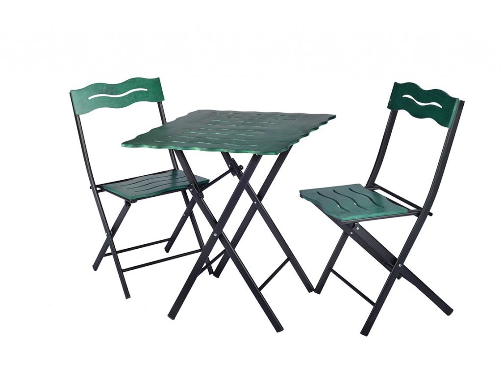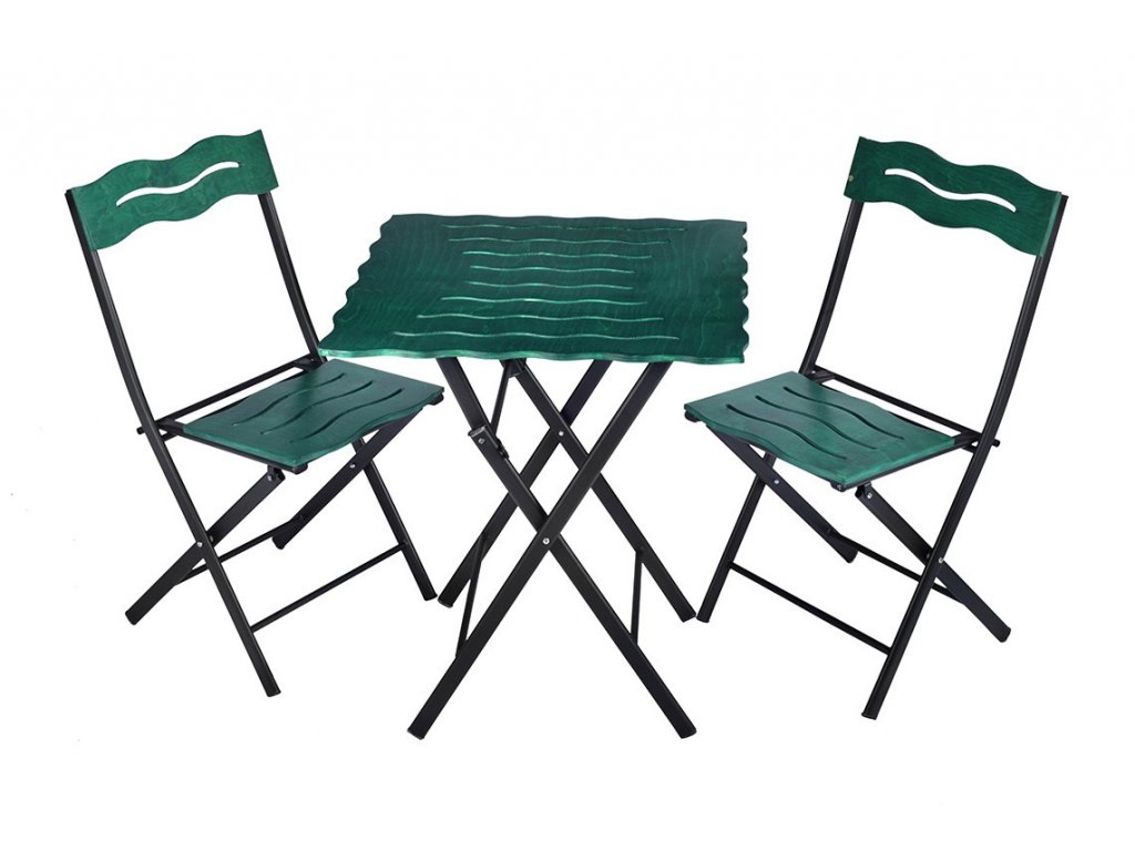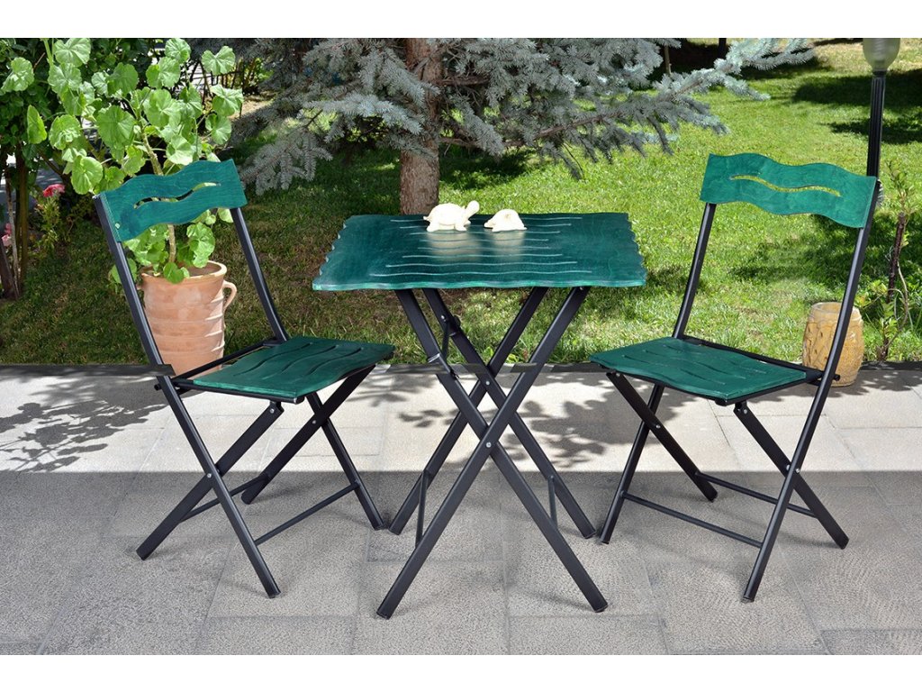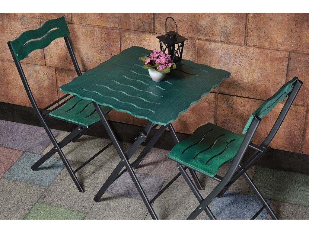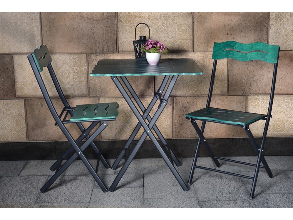 Zelenočerný set nábytku BISTRO s kovovou skládací konstrukcí.
