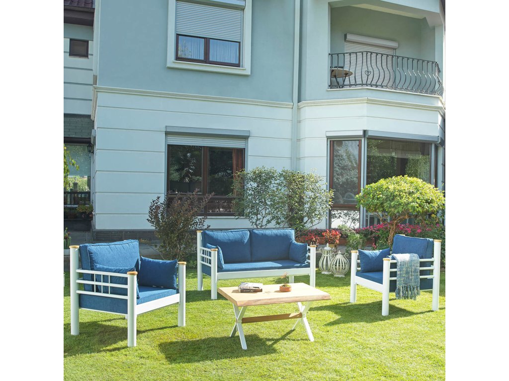 Zahradní nábytek set KAPPIS 2+1+1 bílá tmavě modrá