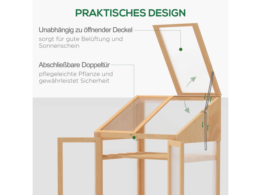 ✔ Horní okna pěstebního záhonu lze otevřít pro větrání