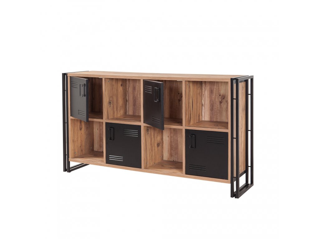 Knihovna COSMO MATEIX disponuje osmi přihrádkami. Čtyři jsou schované za černými dvířky a čtyři jsou otevření.