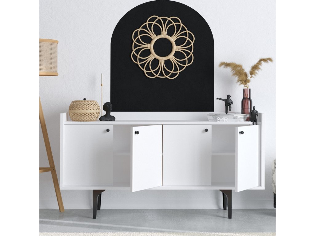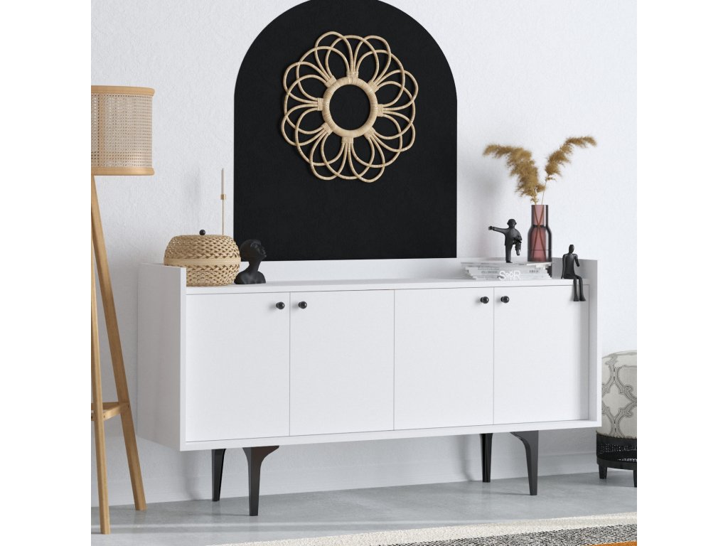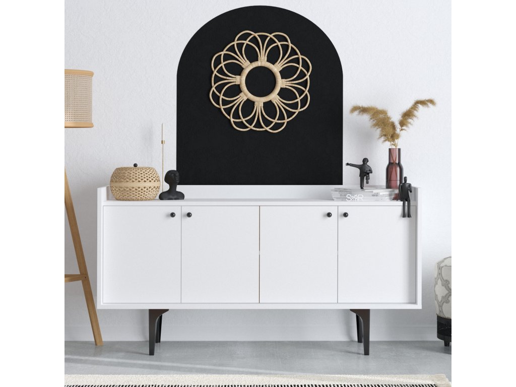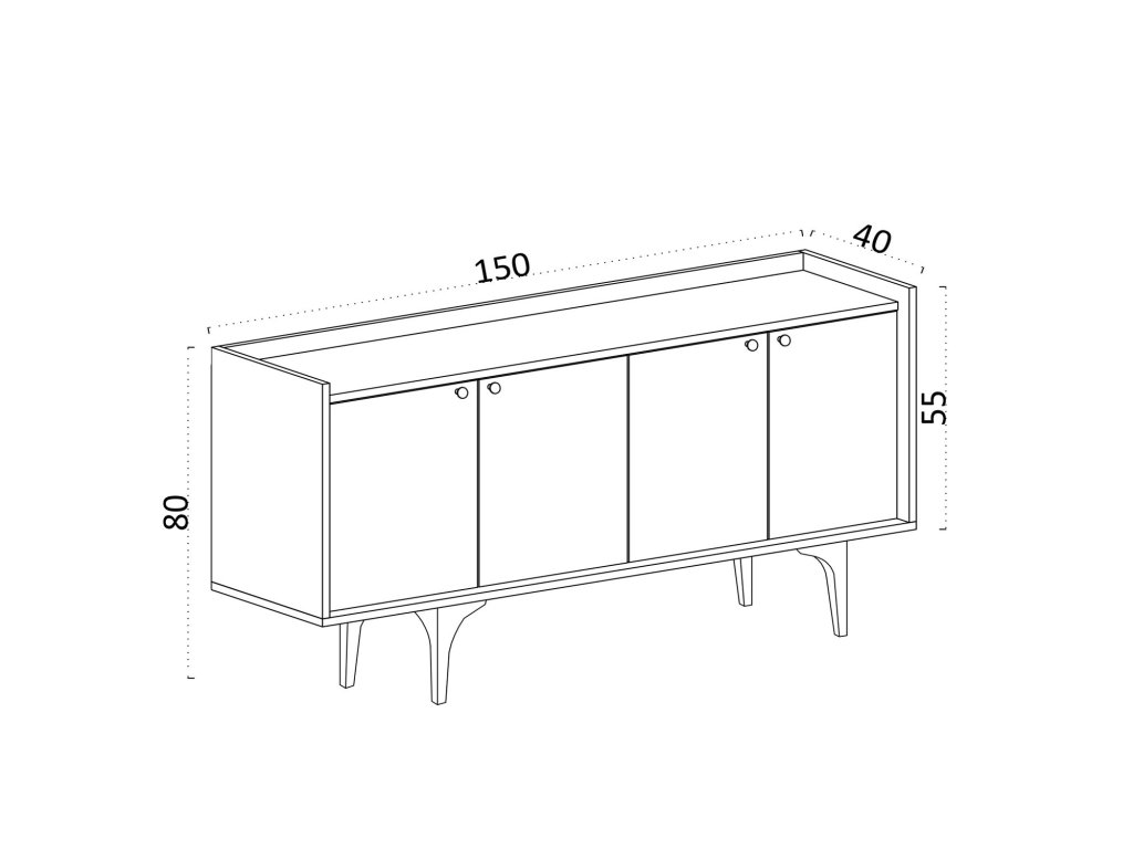 Díky šířce 150 cm, výšce 80 cm a hloubce 40 cm poskytuje naše konzola dostatek úložného prostoru pro všechny vaše nezbytnosti. Výška nohou 25 cm dodává elegantní nádech a zároveň zajištuje stabilitu a pevnost.