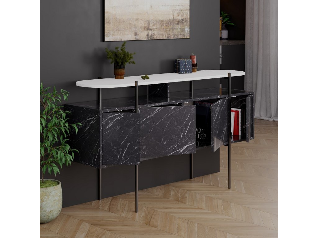 Tato konzole, vyrobená s maximální precizností, je vyrobena ze 100% melaminem potažené dřevotřískové desky, která zajišťuje odolnost a dlouhou životnost. Její 18mm tloušťka jí dodává na robustnosti, takže se jedná o spolehlivý kus nábytku, který obstojí ve zkoušce času. Každý detail byl pečlivě navržen k dokonalosti, což je zárukou výrobku, který je nejen vizuálně ohromující, ale také vyroben tak, aby vydržel.