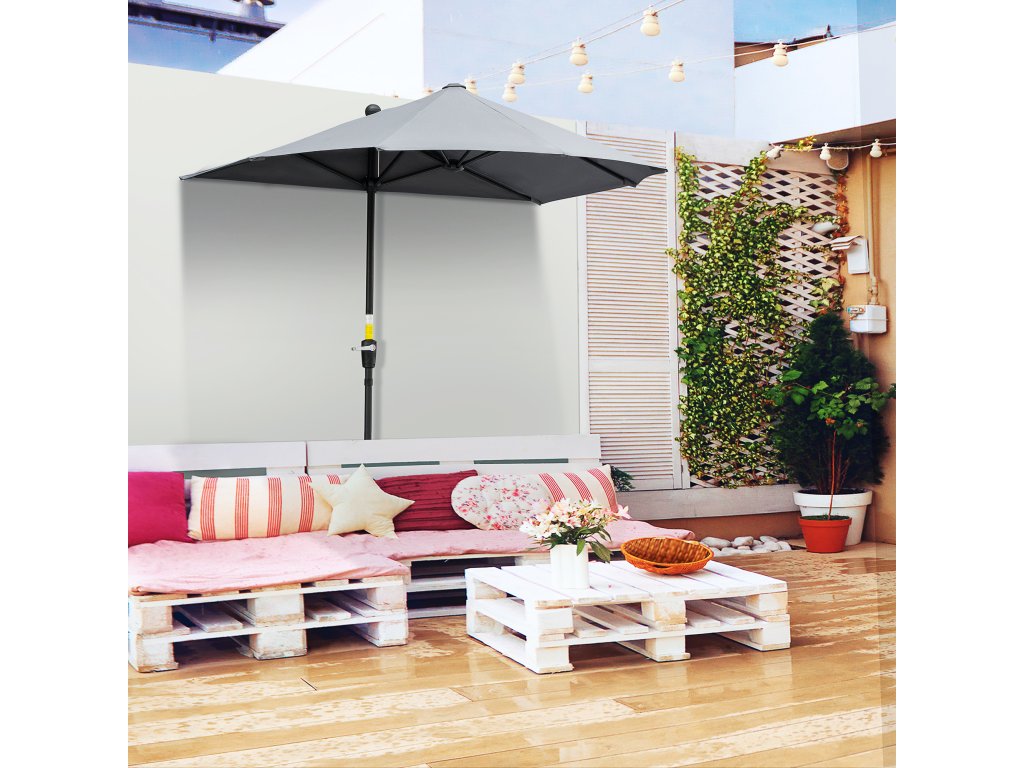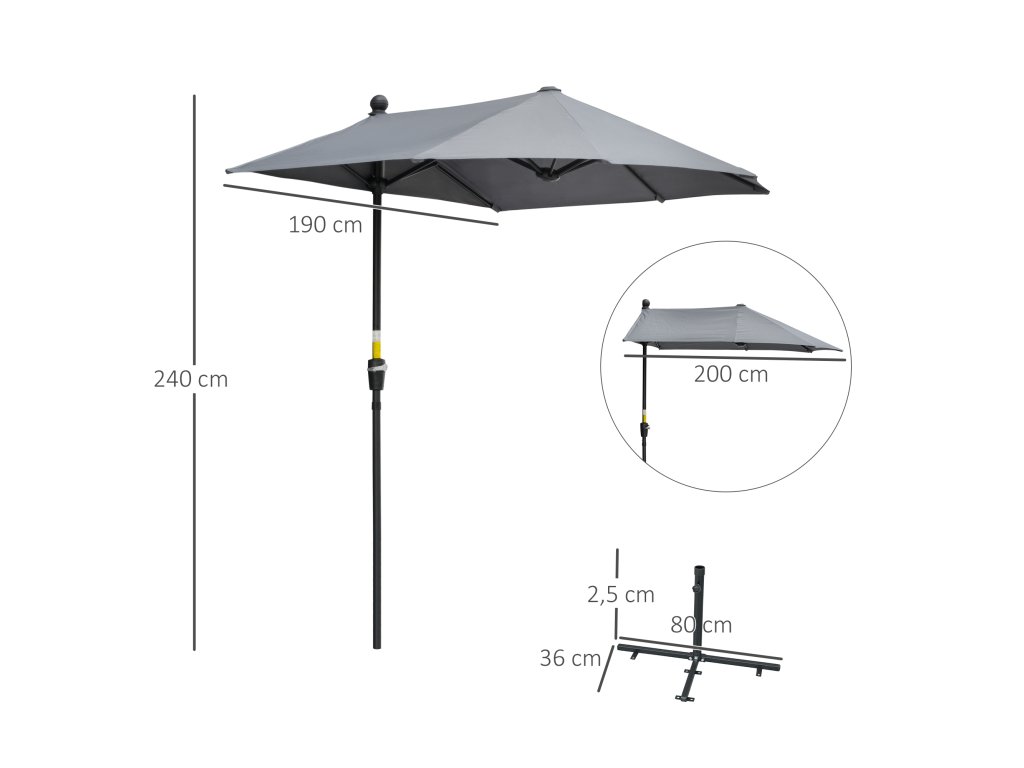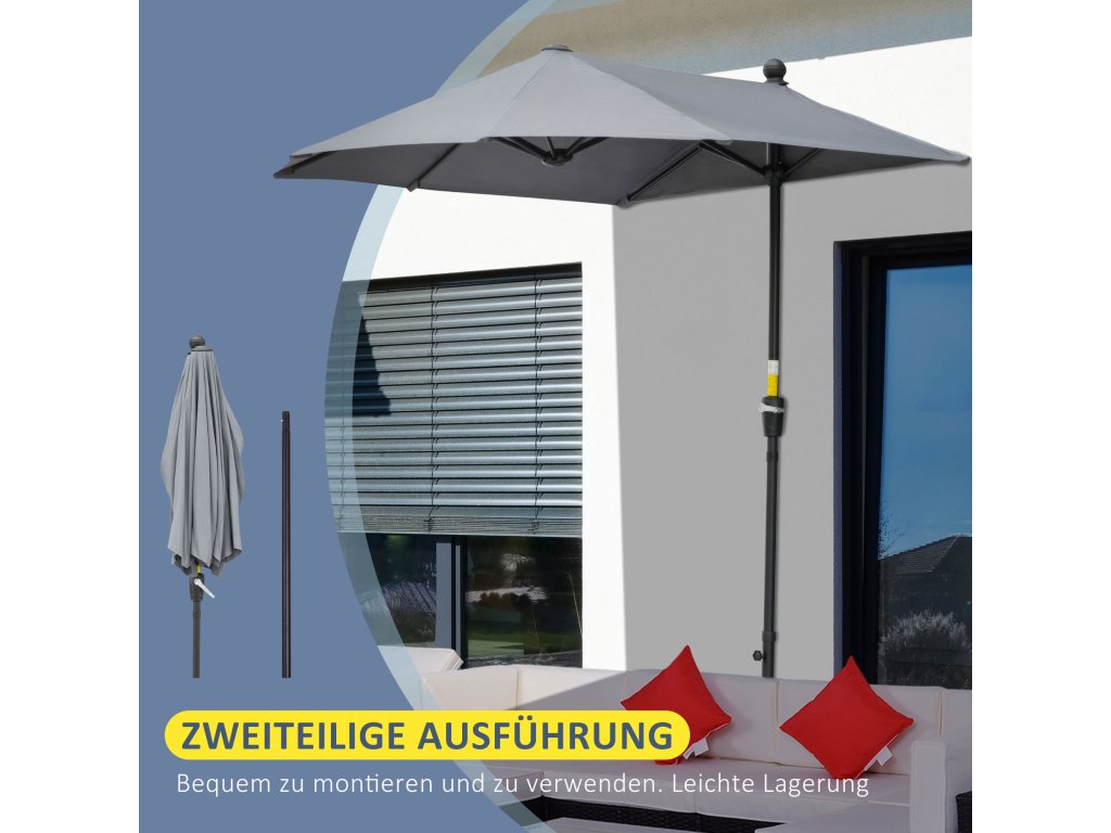 Tento originální slunečník od společnosti Outsunny je ideální pro zahrady a terasy s omezeným prostorem. Tento slunečník se vyznačuje tím, že jej lze umístit v blízkosti rovných stěn, aniž by vznikly mezery. Robustní látka slunečníku vás ochrání před přímým slunečním zářením a poskytne dostatek stínu. Balkonový slunečník je vybaven praktickým větracím otvorem a je stabilní a bezpečný i za větrného počasí.