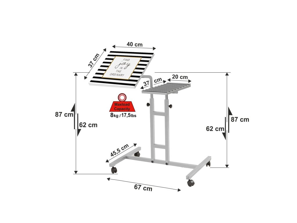 Celkové rozměry stolku: Šířka: 67 cm Hloubka: 45,5 cm Výška: 87 cm